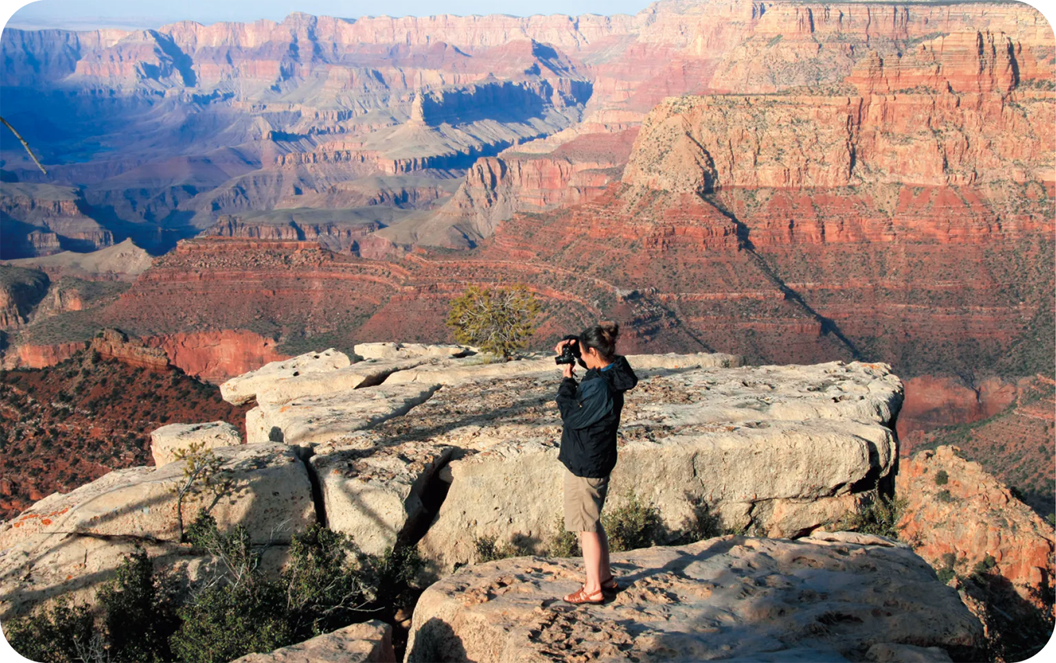 公園内はコロラド川を挟んでサウス・リムとノース・リムの2エリアに分かれる。アクセスが便利で見どころの多いサウス・リムなら日帰りでも行ける。日帰りツアーもサウス・リムを中心にしたものが多い。