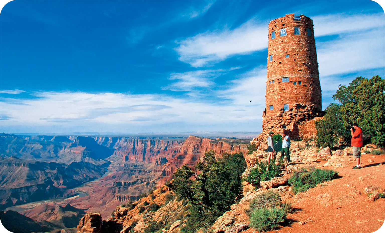 サウス・リムの東の端にあるデザート・ビューのウォッチタワー。展望スペースやショップもある。