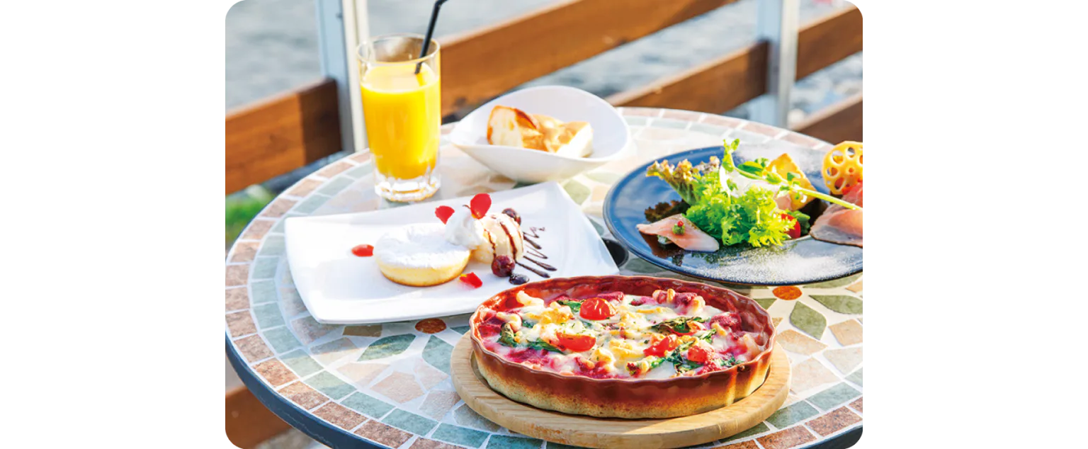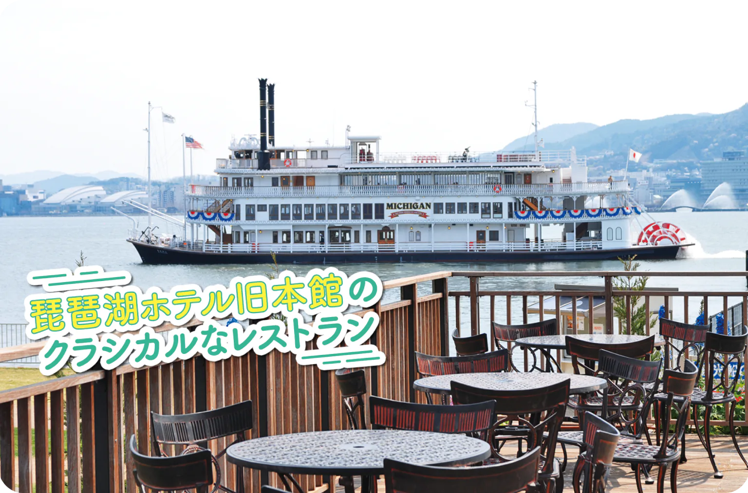 びわ湖の畔には、すてきなロケーションのカフェがたくさん。刻一刻と表情を変える水面のきらめきを眺めながら、格別のランチやスイーツをゆったりと味わおう。
