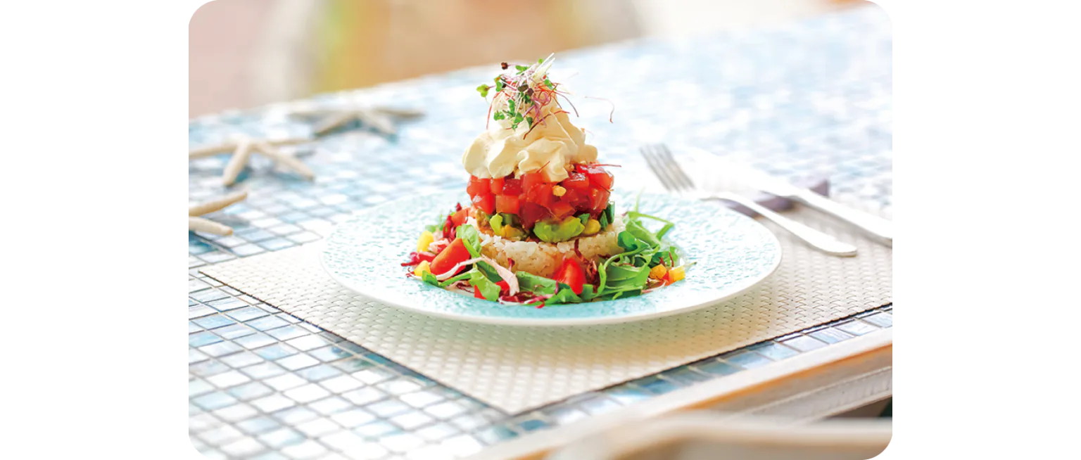 アボカドとマグロのベストコンビをクリーミーなわさび醤油がキリッと引き締める「マグロとアボカド〜わさび醤油のエスプーマ仕立て~」2145円