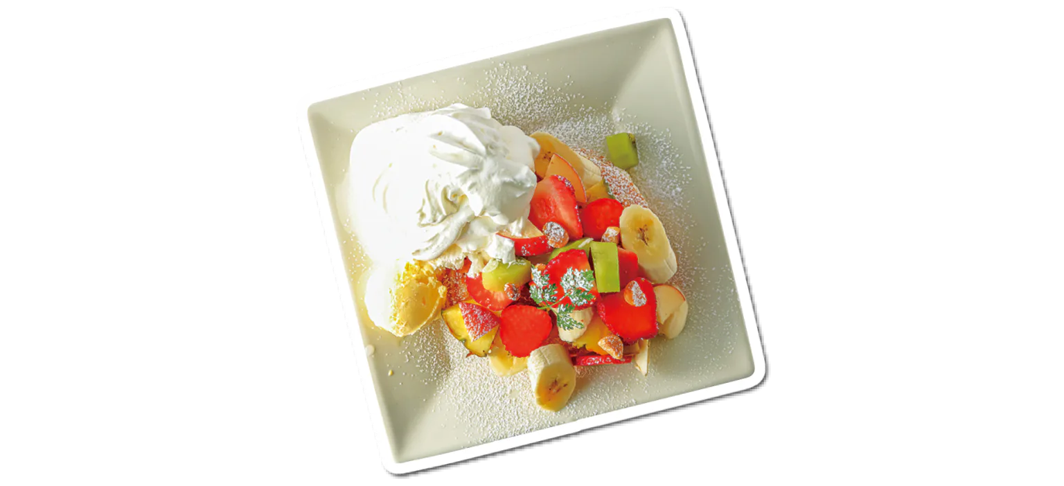 ボリューム満点の「フルーツたっぷりパンケーキ」1595円