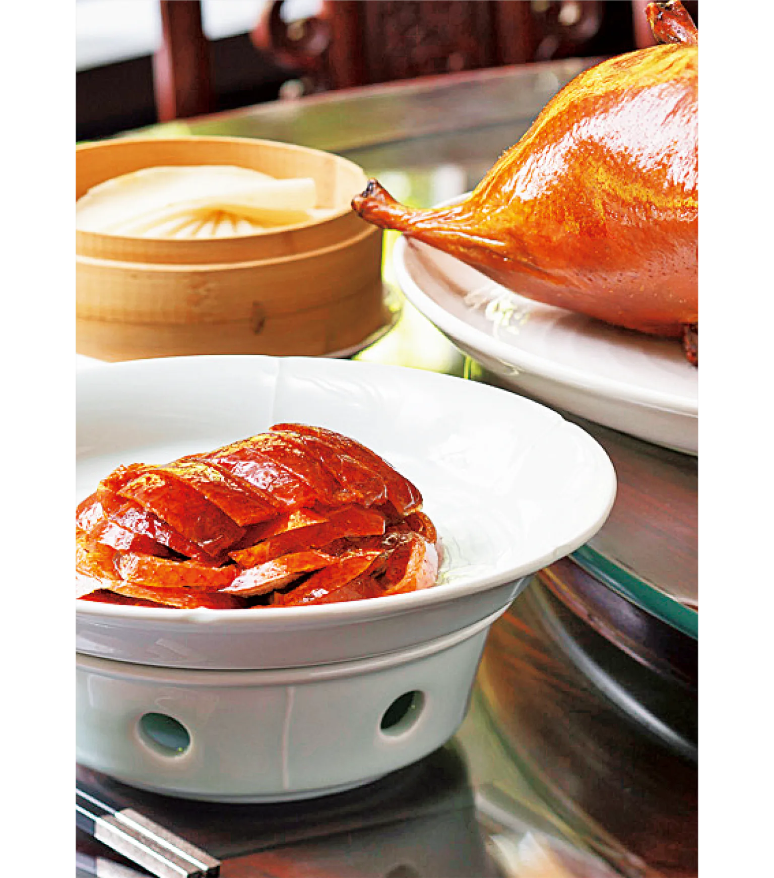 香ばしさがたまらない老北京烤鴨(北京ダック)398元。要1日前予約