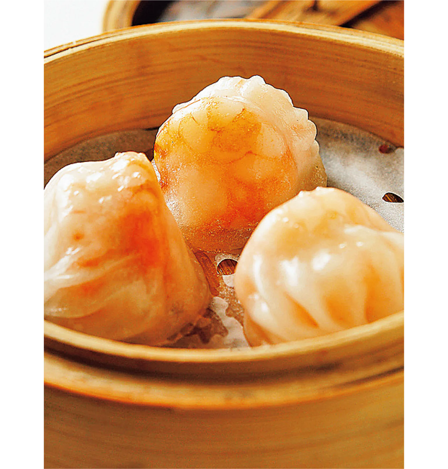 申粤蝦餃皇38元(3個)。大きくて、プリプリのエビを薄皮で包んだエビ蒸し餃子