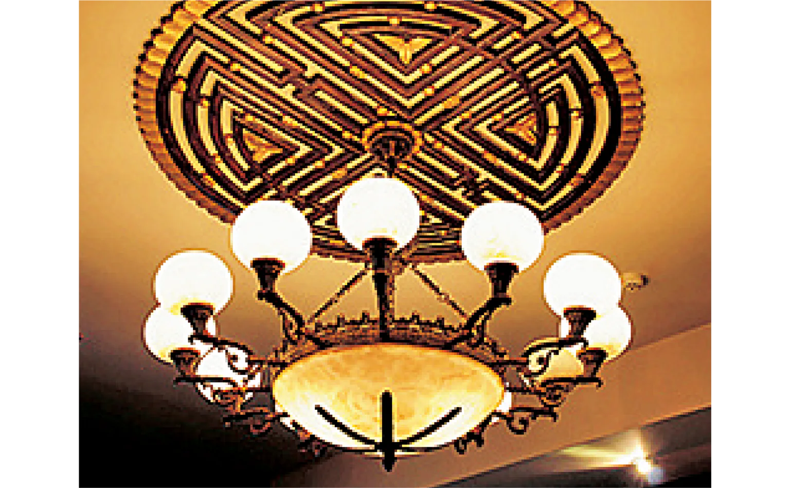 2階の天井に施された中国風の図案や意匠、シャンデリアなど、1913年の建築当時の姿をとどめる。アンティーク家具を上品に配したシックな空間