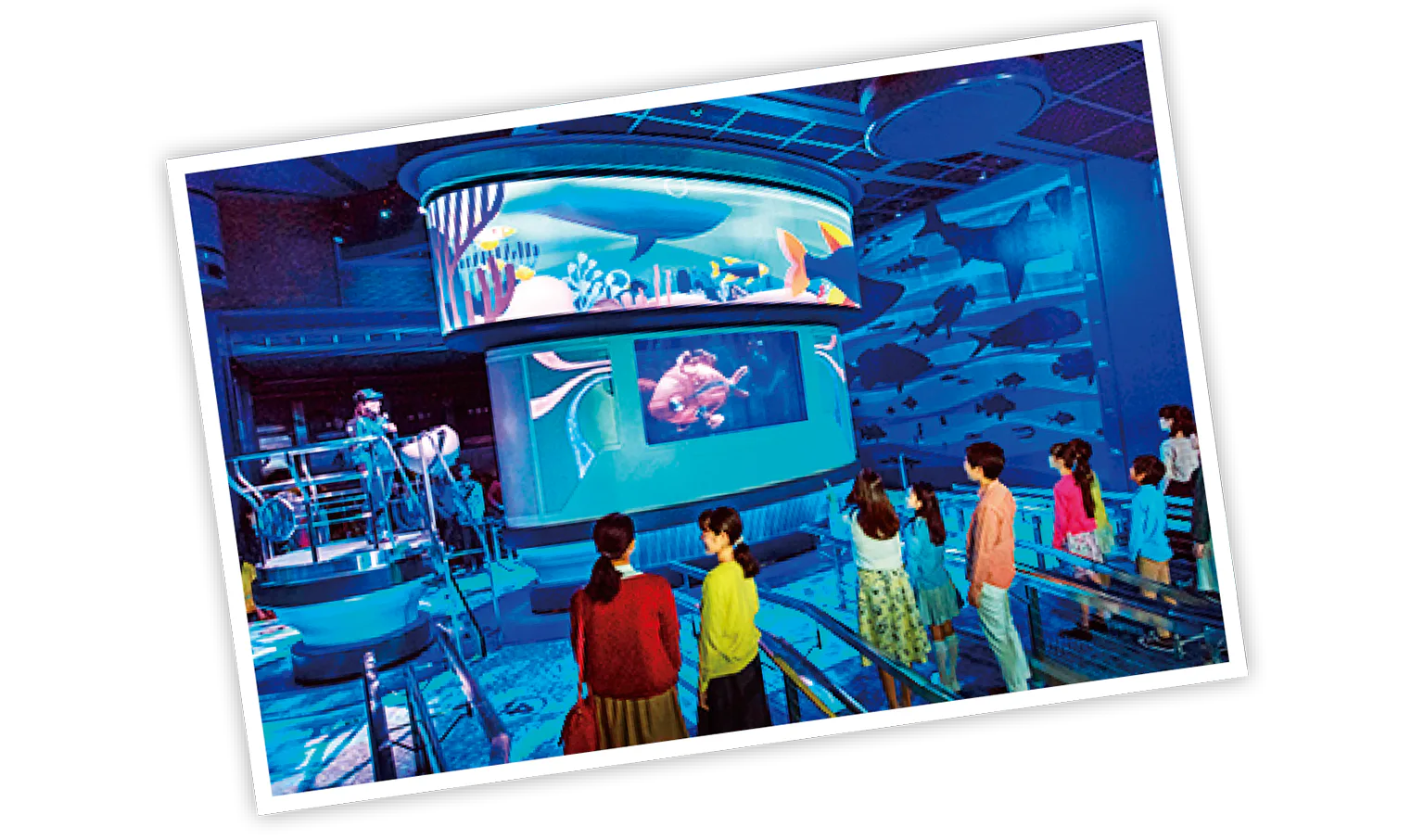 ロビーでは魚型の潜水艇「シーライダー」について説明してくれる
