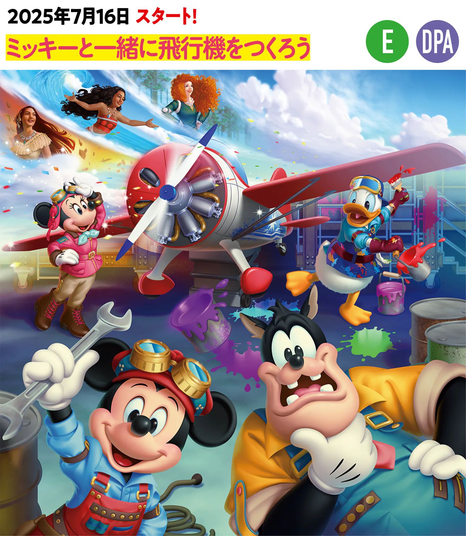 舞台は飛行機工場。ミッキーと仲間たちが協力して飛行機づくりに取り組む様子を、歌とダンスで描くステージショー。