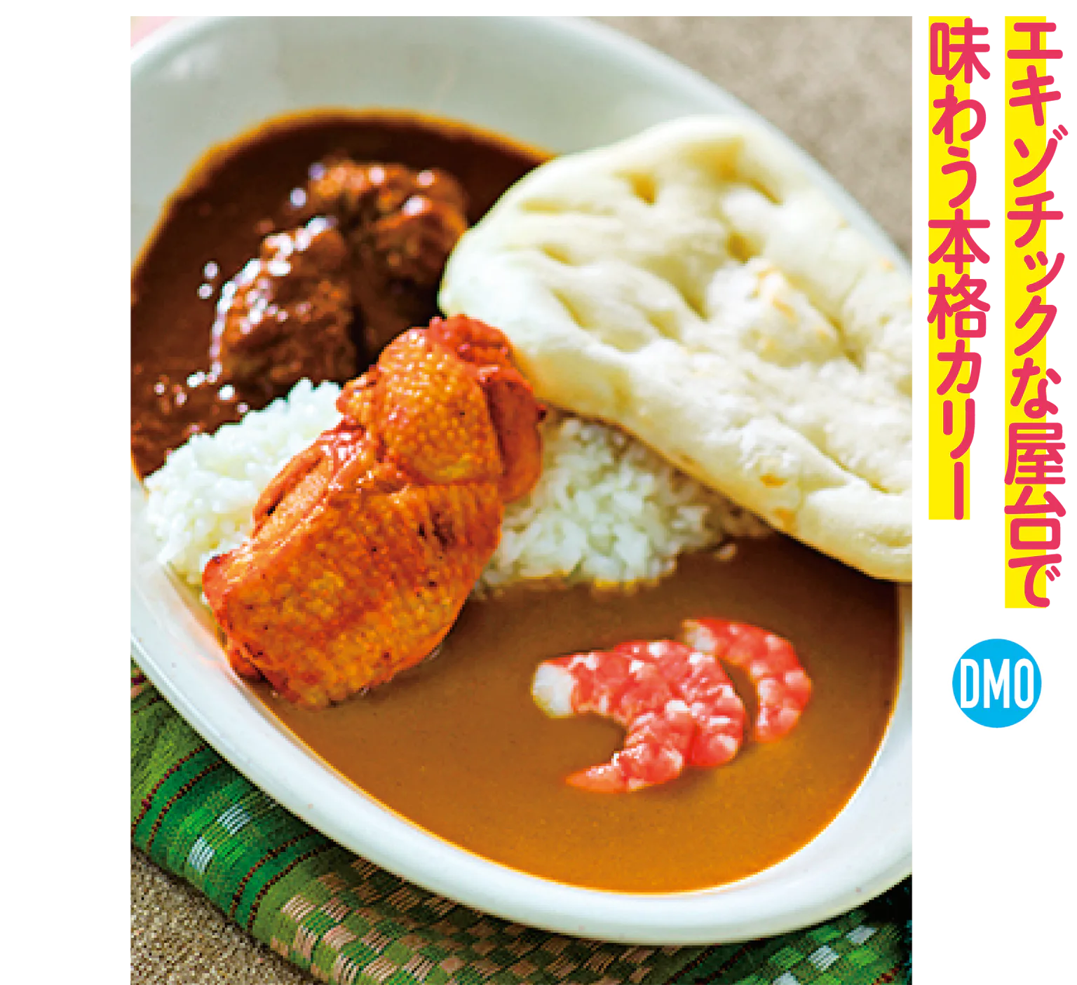 ディズニー映画『アラジン』の空飛ぶ魔法のじゅうたんが集めてきたカリーを味わえる。ビーフ、チキン、ベジタブルの3種のカリーなどを提供。コンビカリー、タンドリーチキン添え(中辛ビーフ&甘口シュリンプ)1300円。