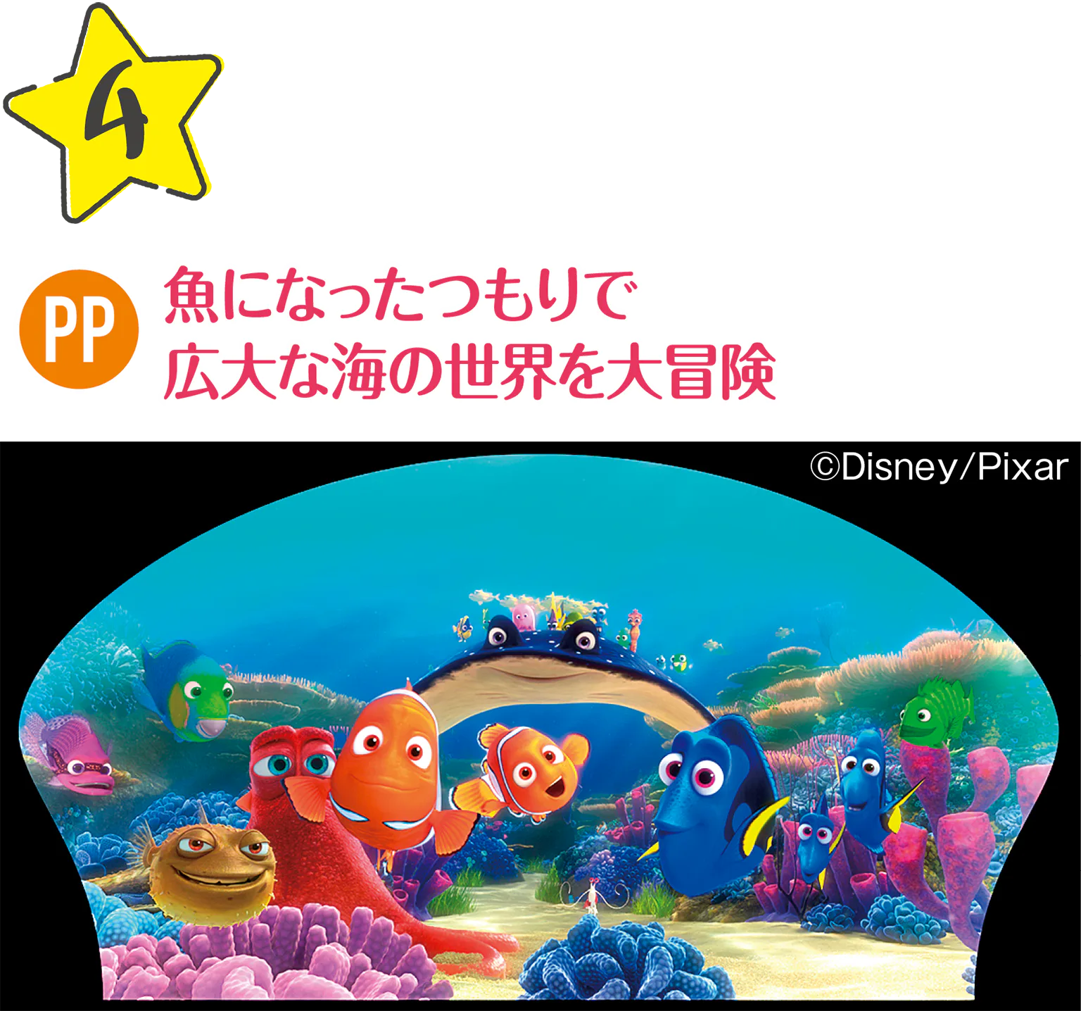 魚サイズに縮める潜水艇に乗って、ニモやドリーたちが暮らす海の世界に出発。乗るたびに異なるシーンが展開するのでお楽しみに。 ※身長90㎝未満の方はご利用になれません。ほか制限あり。