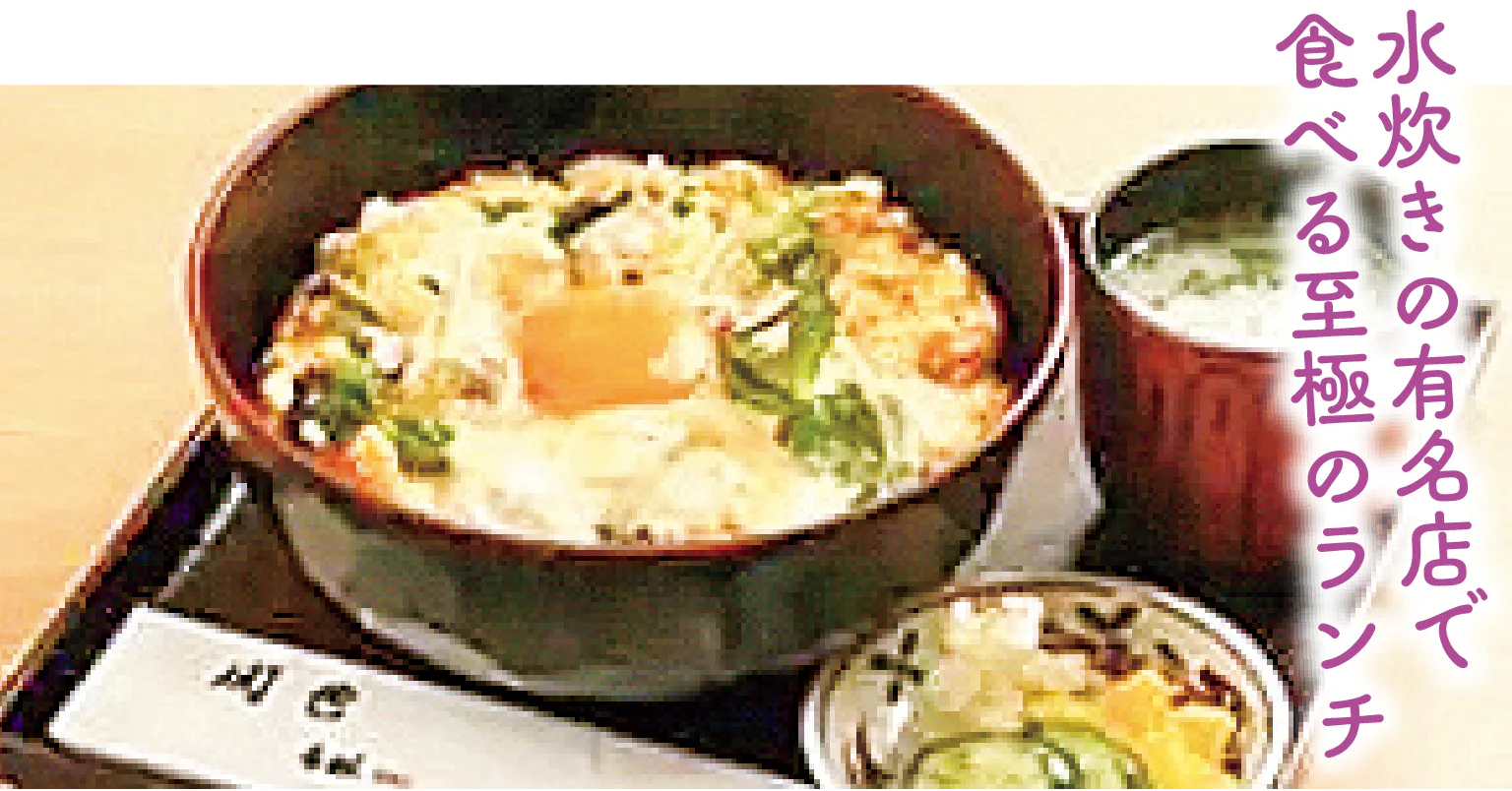 水炊きの有名店で食べられる、人気のランチメニュー。鶏出汁で煮込んだ鶏肉を、とろとろの卵でとじた、鶏のうま味だけを味わう親子丼。