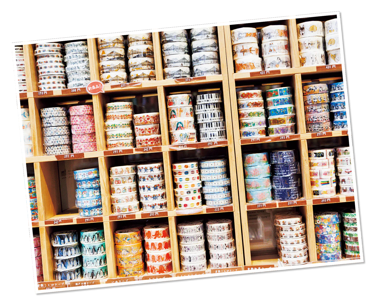 「mt」「倉敷意匠計画室」「倉敷町家テープ制作委員会」など、岡山を中心としたブランドのマスキングテープがずらりと並ぶ、ピカイチの品揃え。便箋など和紙製の文具も扱う。店内には1000種以上ものマスキングテープが並び、色柄やサイズが豊富な商品をブランドごとに分類している。※掲載商品は売り切れる場合があります。