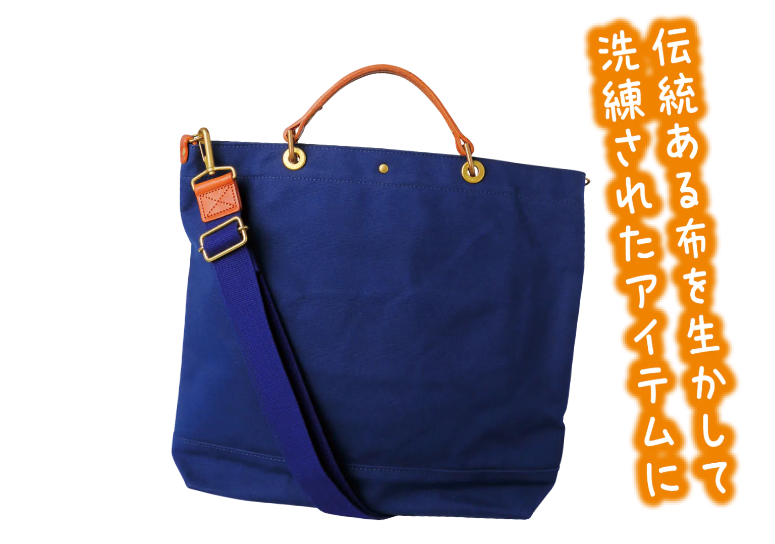 上質な帆布を用いたバッグを中心に、ファッション小物、文具など幅広く展開。最高の技術力で織られた帆布は、丈夫で使うほどに風合いが増す。帆布の織物会社の直営店。