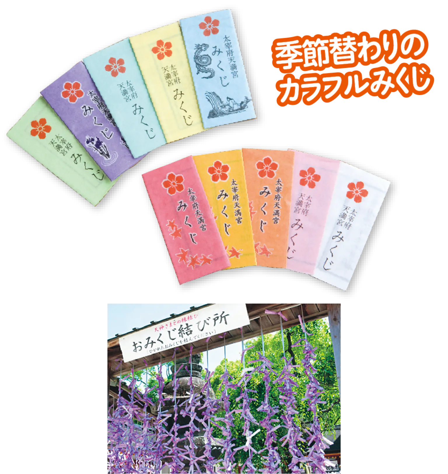 道真公がこよなく愛したという梅のマークがシンボル的存在に。御神酒も太宰府天満宮では梅酒。