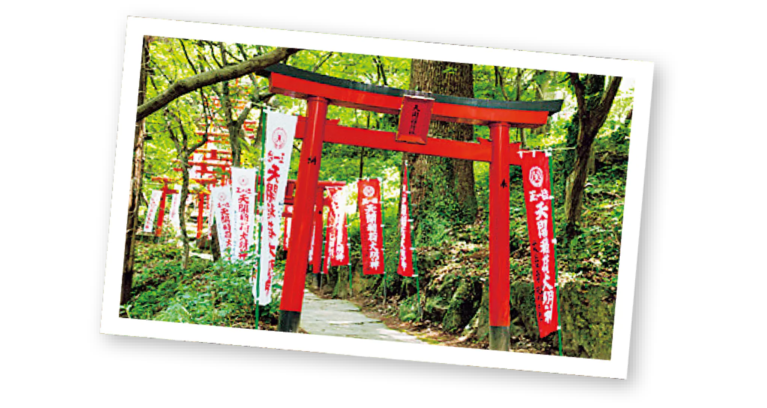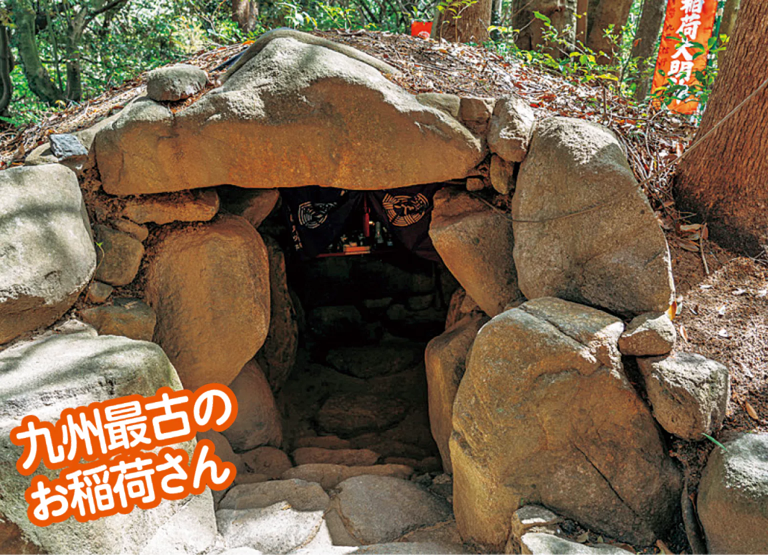 天満宮の裏手に位置する小高い丘にひっそりと立つ神社。九州最古のお稲荷さんといわれ、その名のとおり「天に道が開け、運気が上昇する」という。