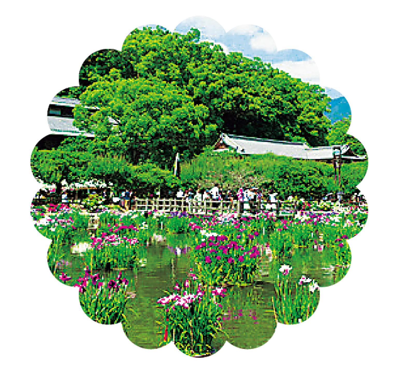 東神苑の菖蒲池に約55種3万本が咲く。同時期に菖蒲池や太鼓橋、北神苑付近で約5000株のアジサイも楽しめる。