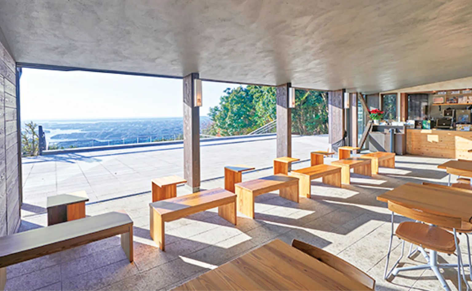「横山展望台」に併設するテイクアウトカフェでは、伊勢志摩の食材を取り入れたドリンクやスイーツなど、季節のカフェメニューが好評。絶景が広がるウッドデッキテラスでいただけるほか、周辺散策のお供にもぴったり。メニューは季節により変更あり。