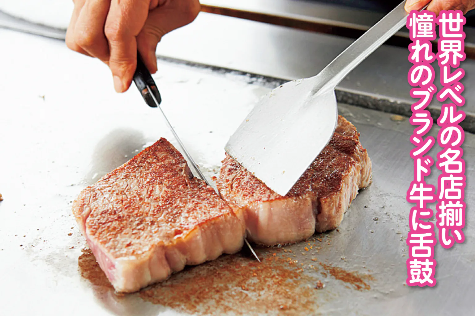 最高品質の神戸牛は、本場で食べたい絶品グルメ。肉厚で上品な味わいのステーキと、華麗な手さばきで調理するシェフのパフォーマンスにも注目!