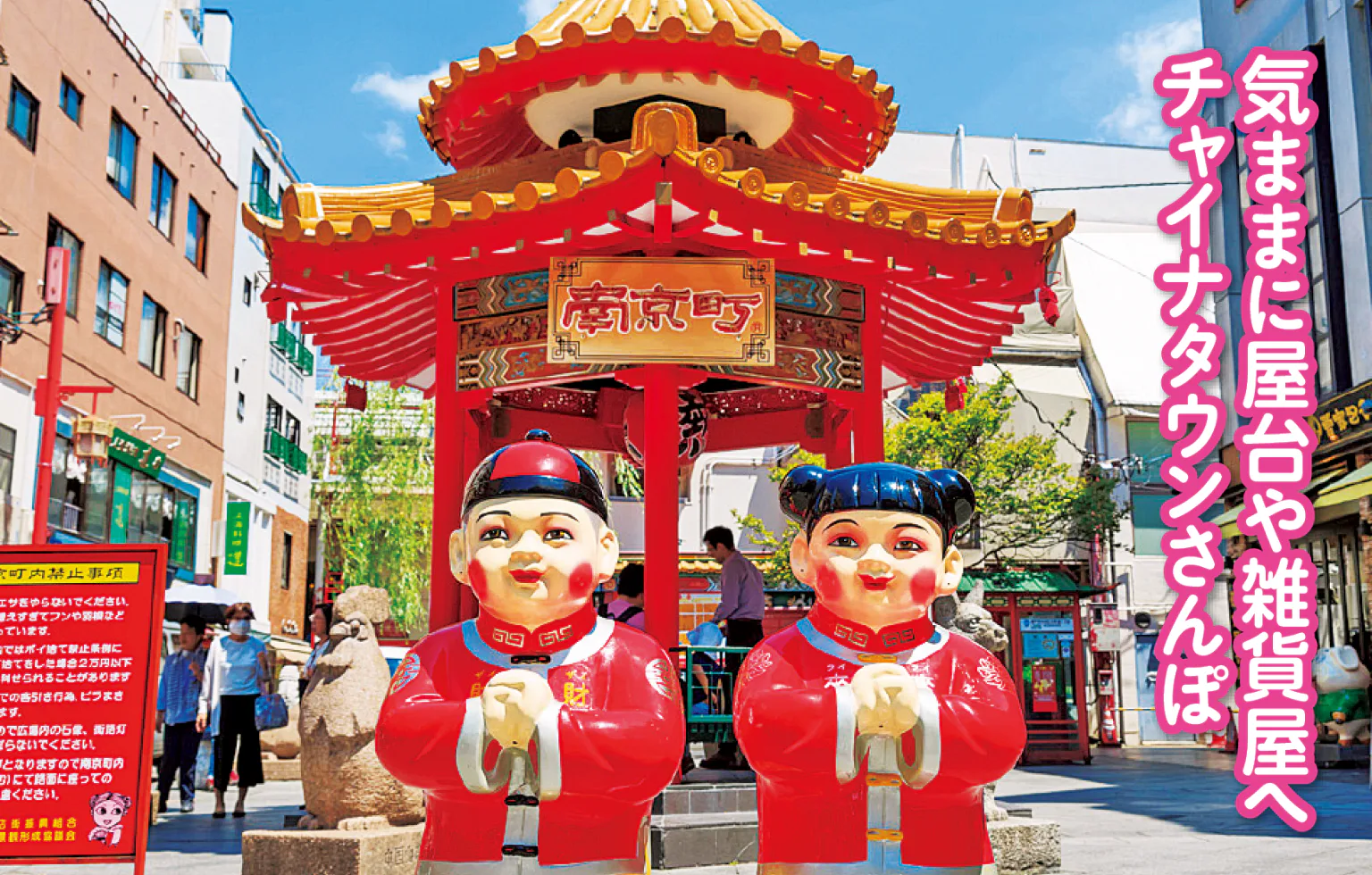 双子のお金の神様の像が立つ南京町広場