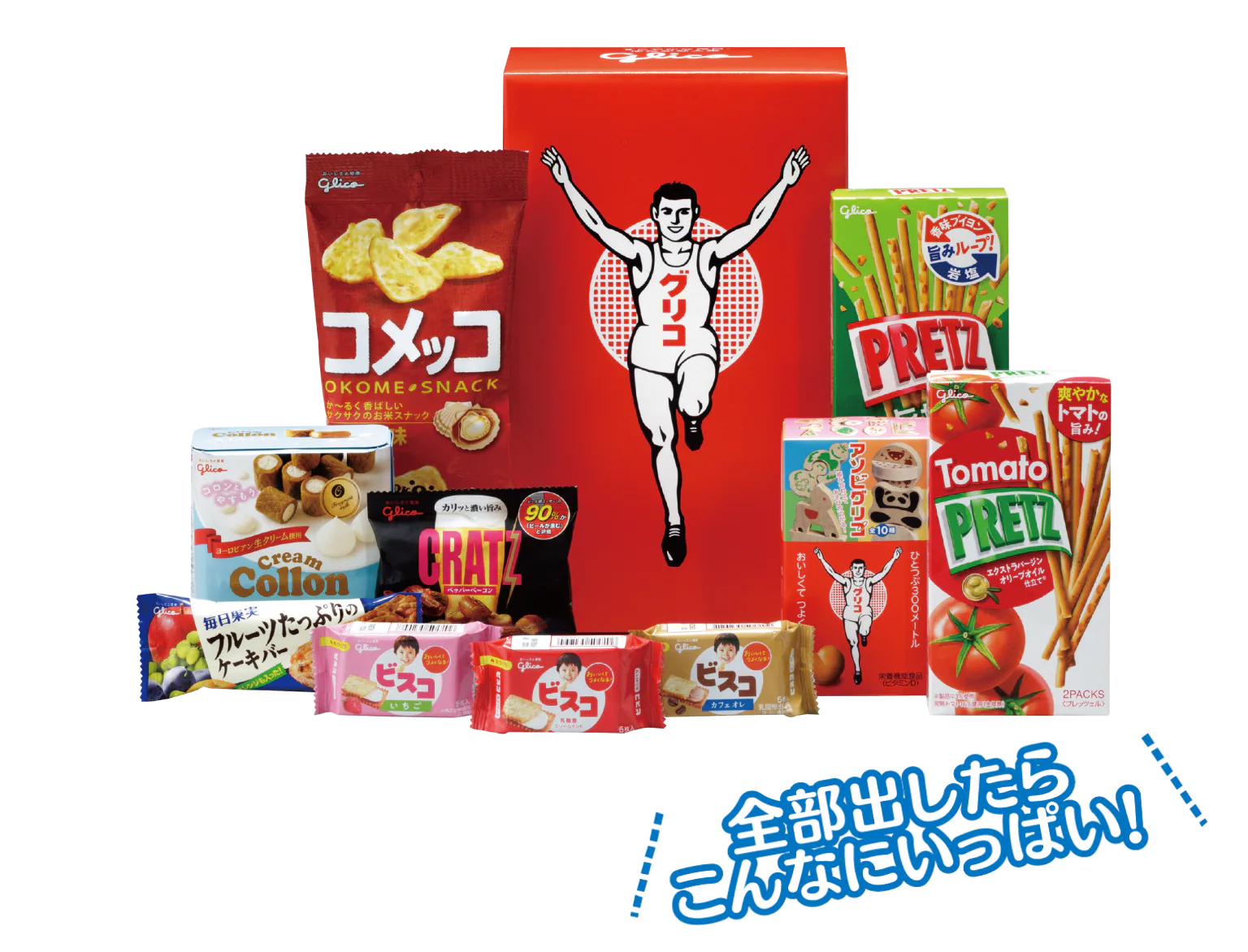 ゴールインマークの箱にプリッツ、ビスコなどグリコ定番の味をどっさり詰合せ