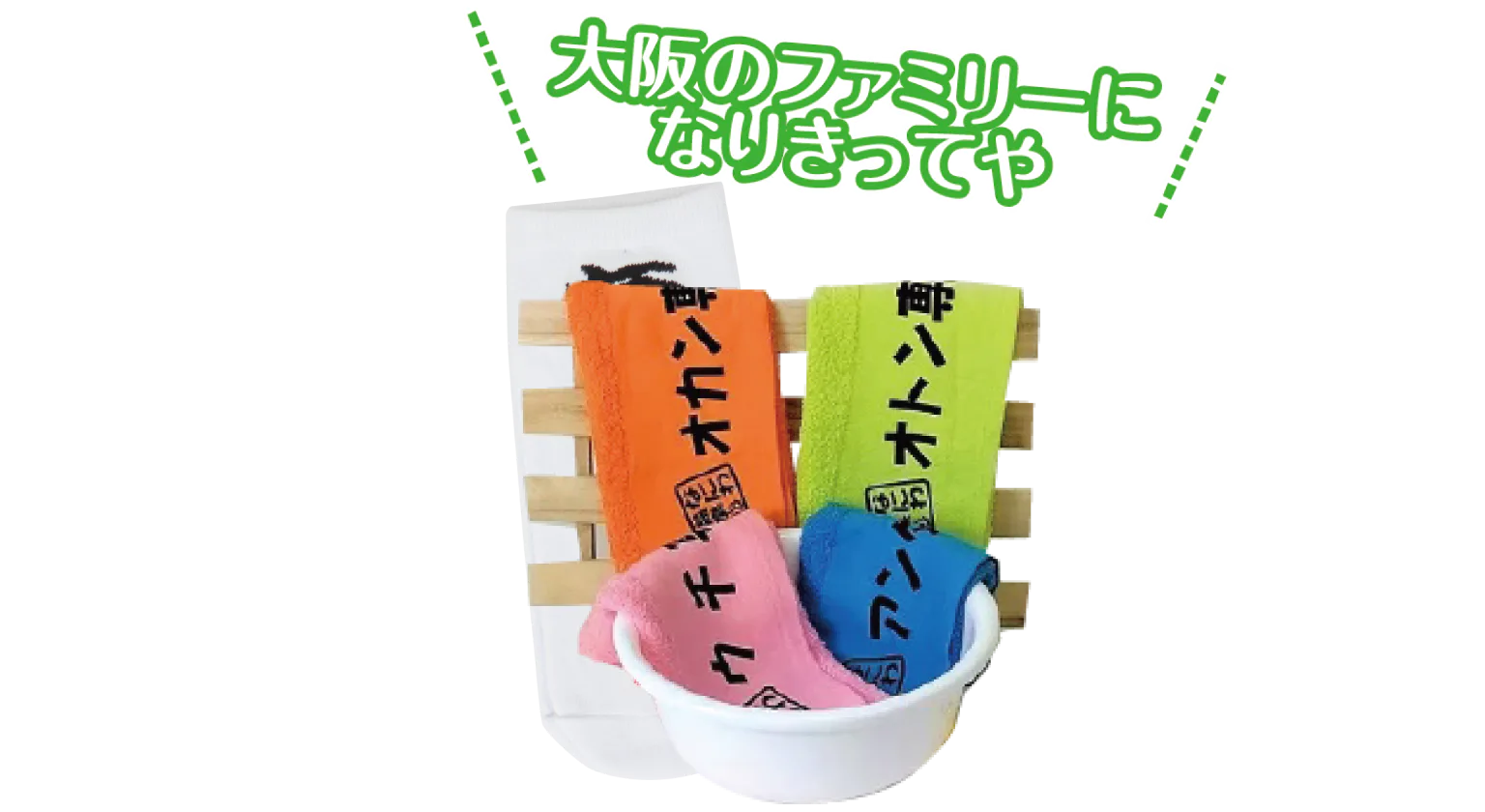 種類はオトン・オカン・ウチ・アンタの4種。専用タオルを家族のおみやげに