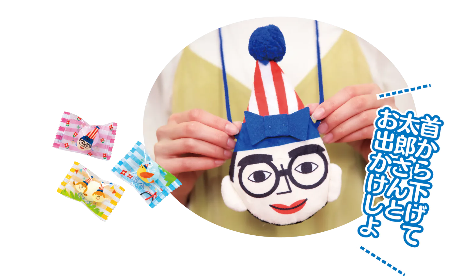ソーダ味のラムネが8個入った太郎ポシェット。小さい子へのおみやげにおすすめ