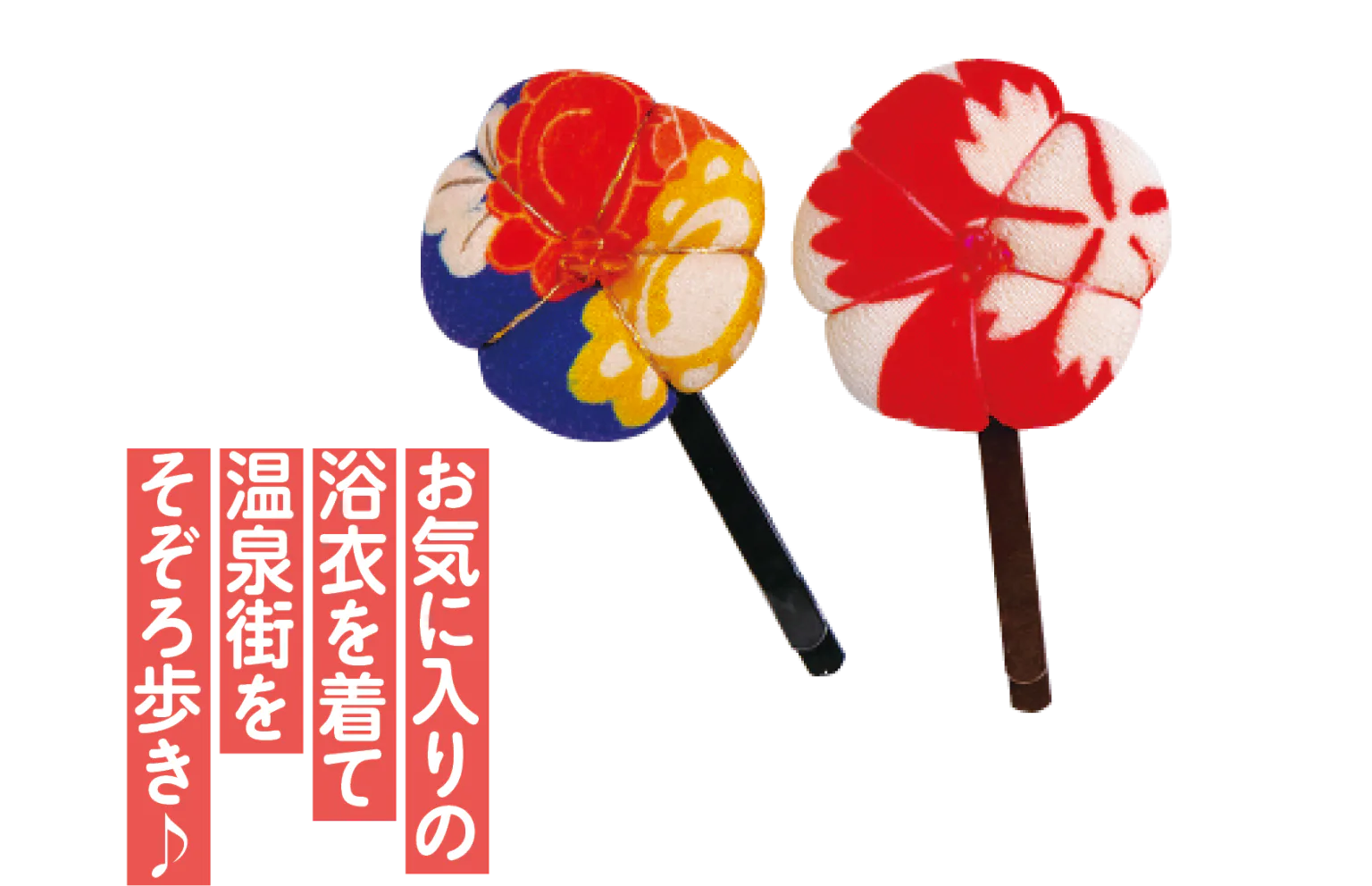 アンティーク着物を使った和雑貨や、金の湯の花で染めた金泉染などオリジナルの雑貨を販売。浴衣のほか、着物(女性5000円~、男性6000円)のレンタルサービスが人気を呼ぶ。下駄や小物などが揃っているので手ぶらで来店OK!スタッフが丁寧に着付けてくれるので安心。