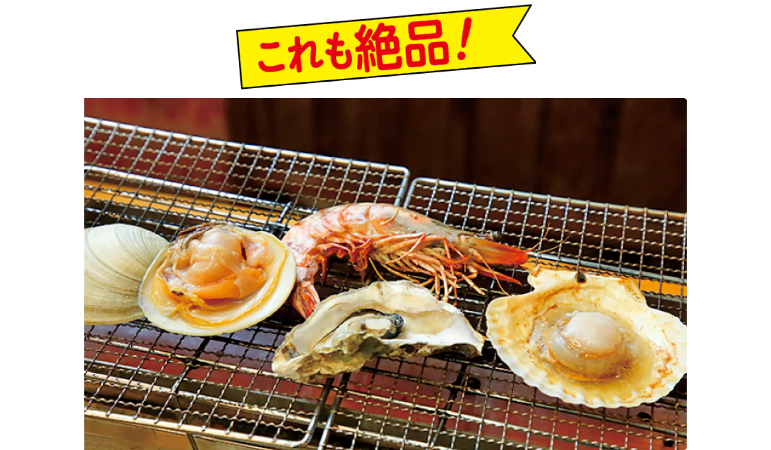店内に並ぶ魚介を自由に選んで網焼きできる。お得なセットもある。最終受付は17時(1~3月は~16時)。