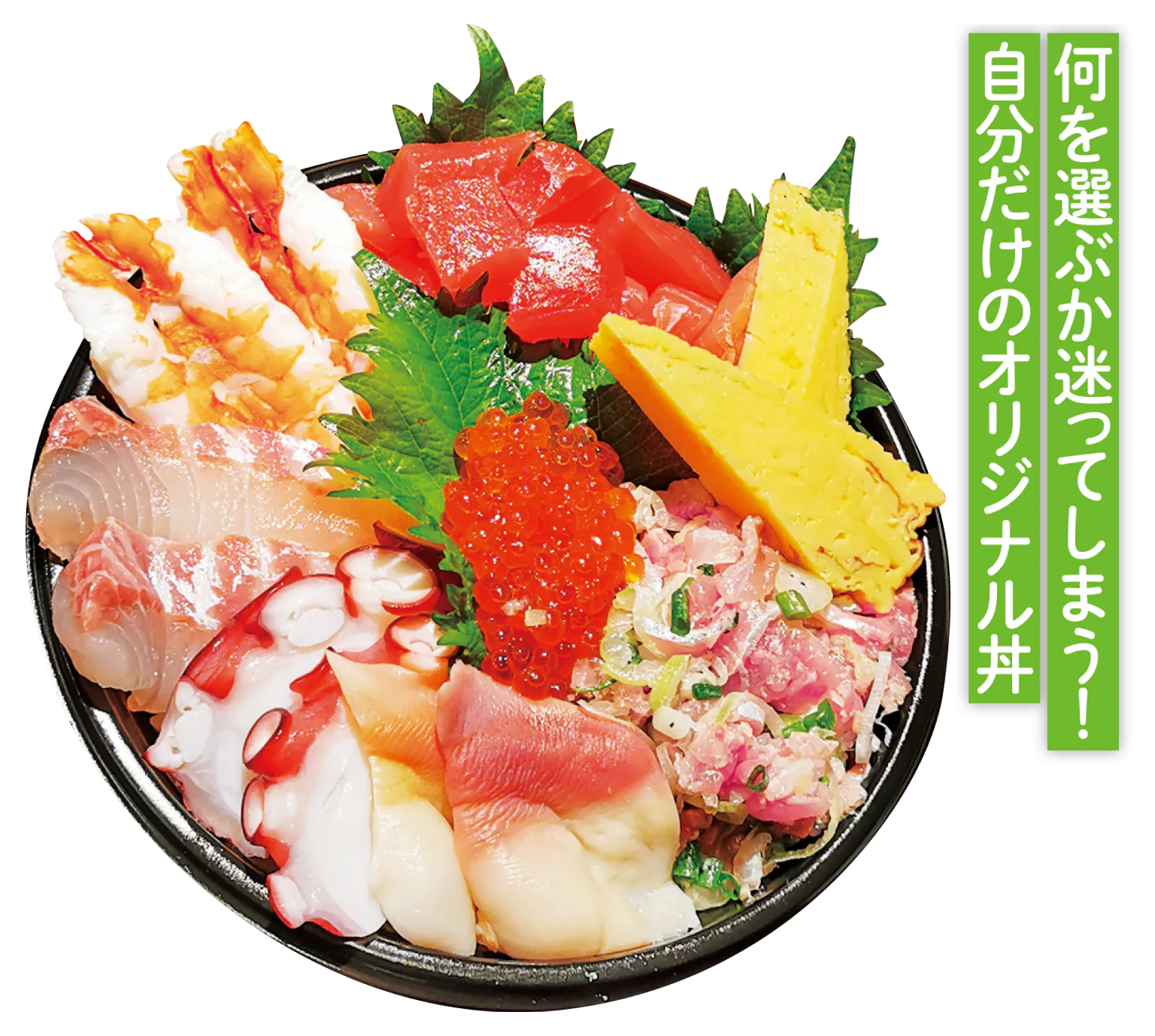 約40種類の具材から好きなものを選んで、自分だけの海鮮丼を作れるのがうれしい。