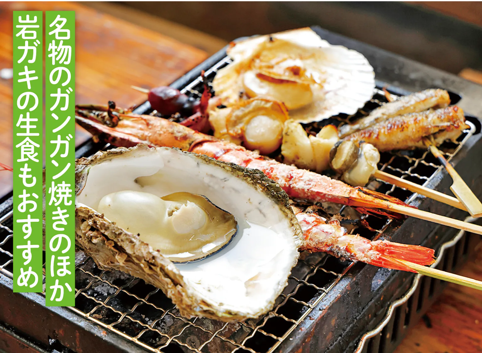 大洗産岩ガキ、ハマグリなど鮮度抜群のおいしさを味わえる。