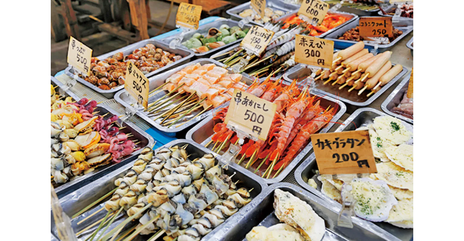 種類豊富に旬の海産物が並ぶ