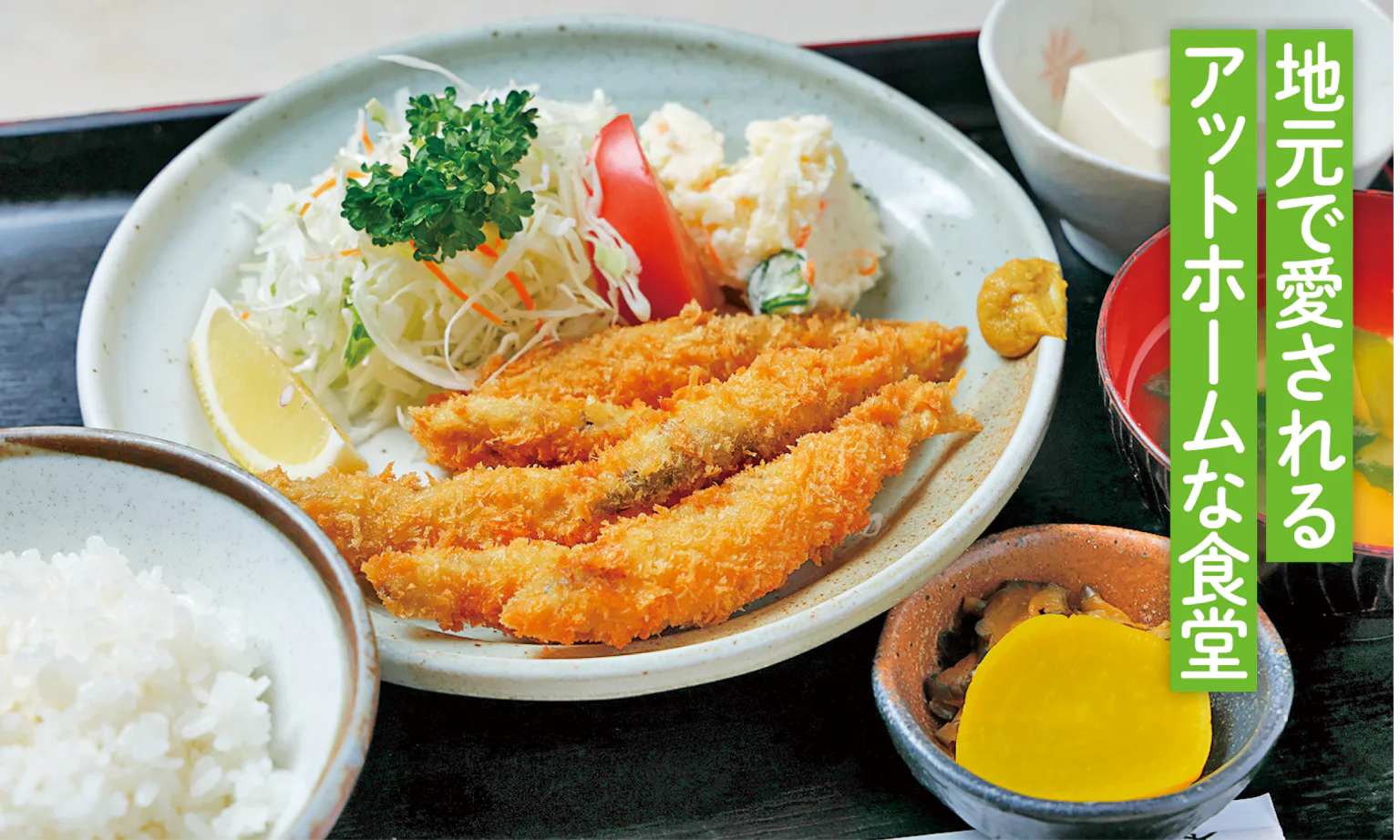 霞ヶ浦の近くにある創業80年以上の老舗食堂。ボリューム満点の豊富な定食類や常陸秋そばなどを提供。なかでも霞ヶ浦産のキャットフィッシュやワカサギを使ったメニューはぜひ味わいたい。