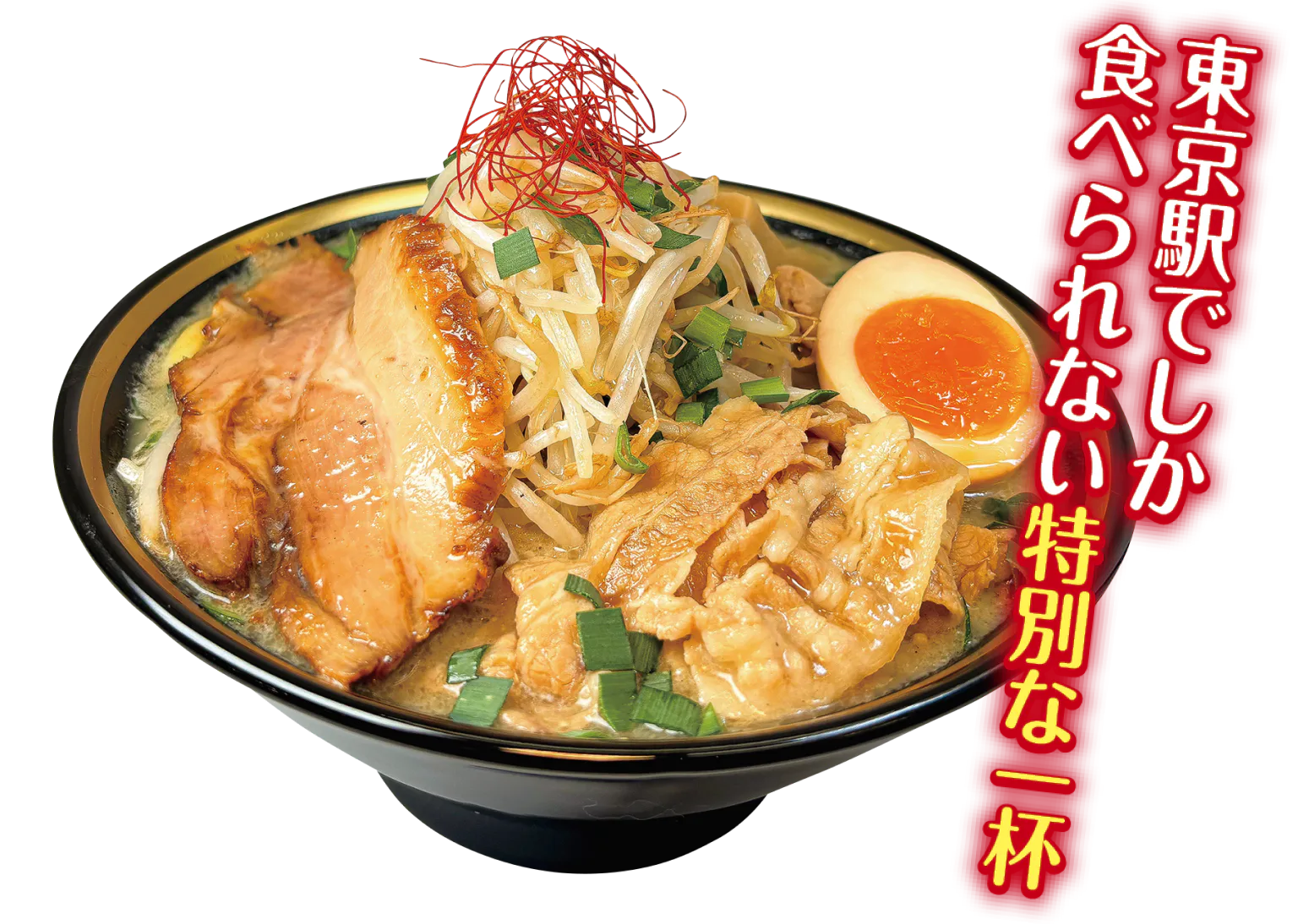 ニンニクと醤油に漬け込んだ特製豚バラ肉をトッピング