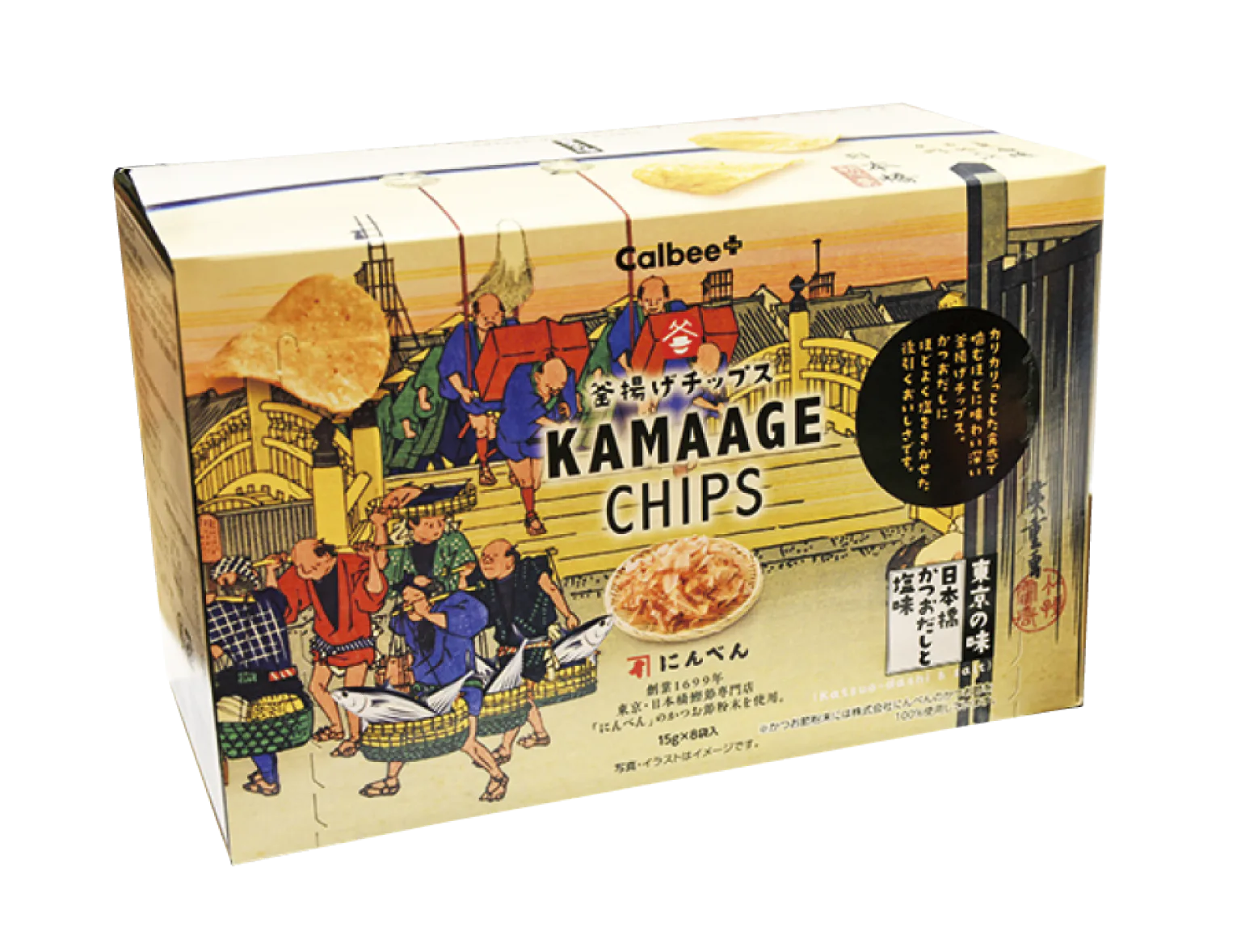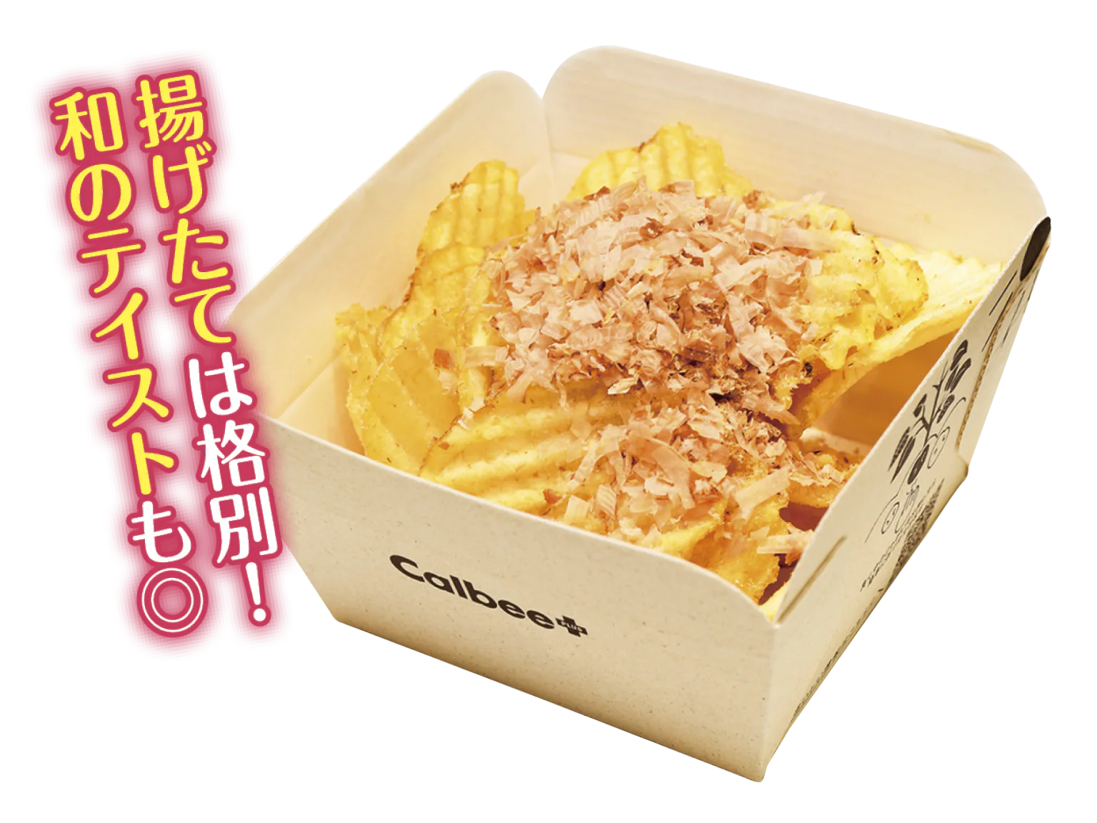 波形形状の厚切りポテトチップスの上に、さらにかつお節をON!