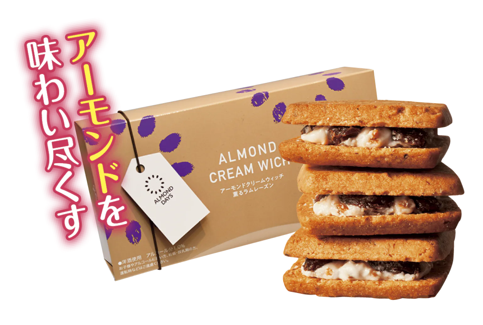 皮ごと使用したアーモンドの香ばしさとラムレーズンが好相性