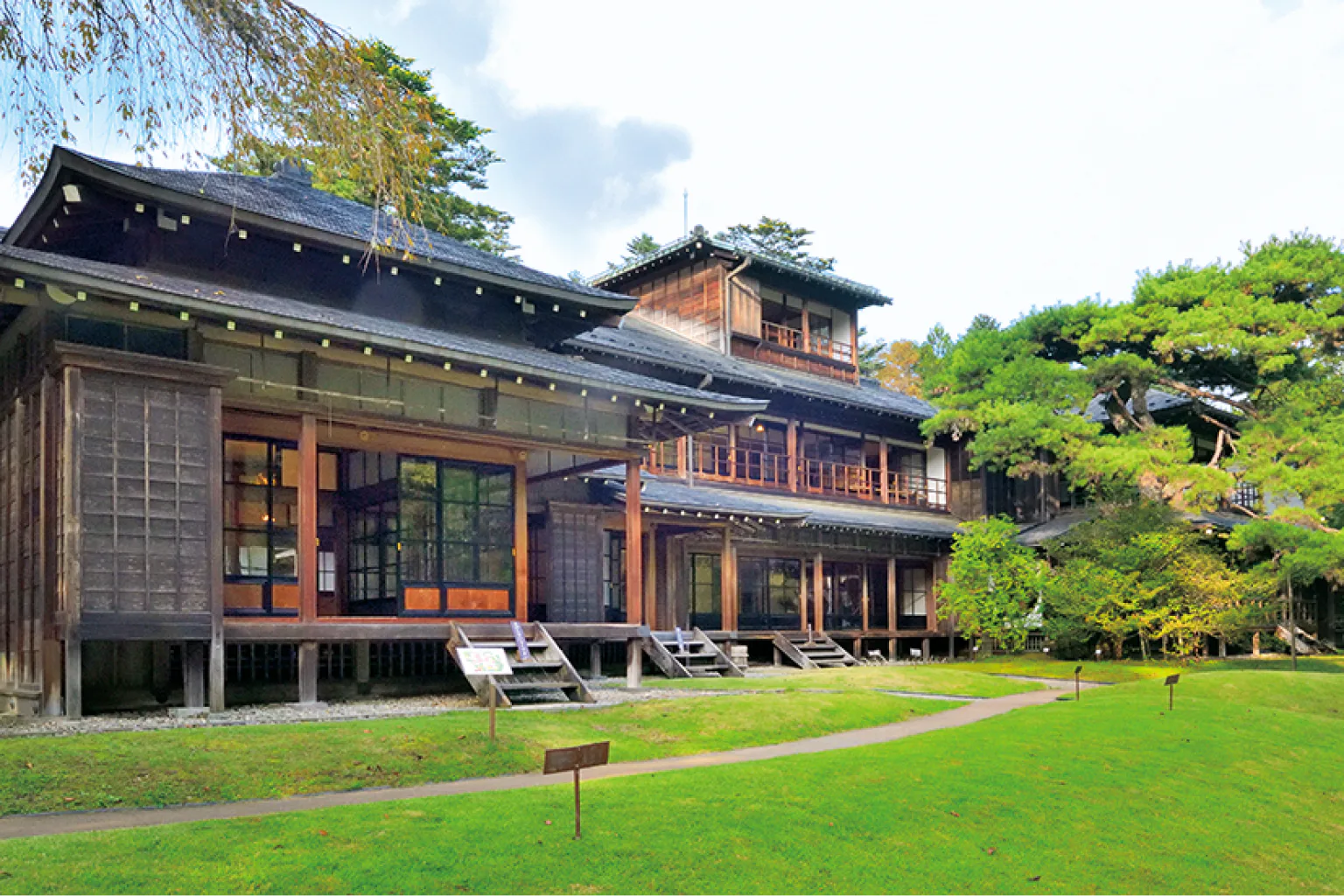 嘉仁親王(大正天皇)のご静養地として造営。建物は江戸・明治・大正の建築様式が融合した集合建築群で、国の重要文化財に指定されている。