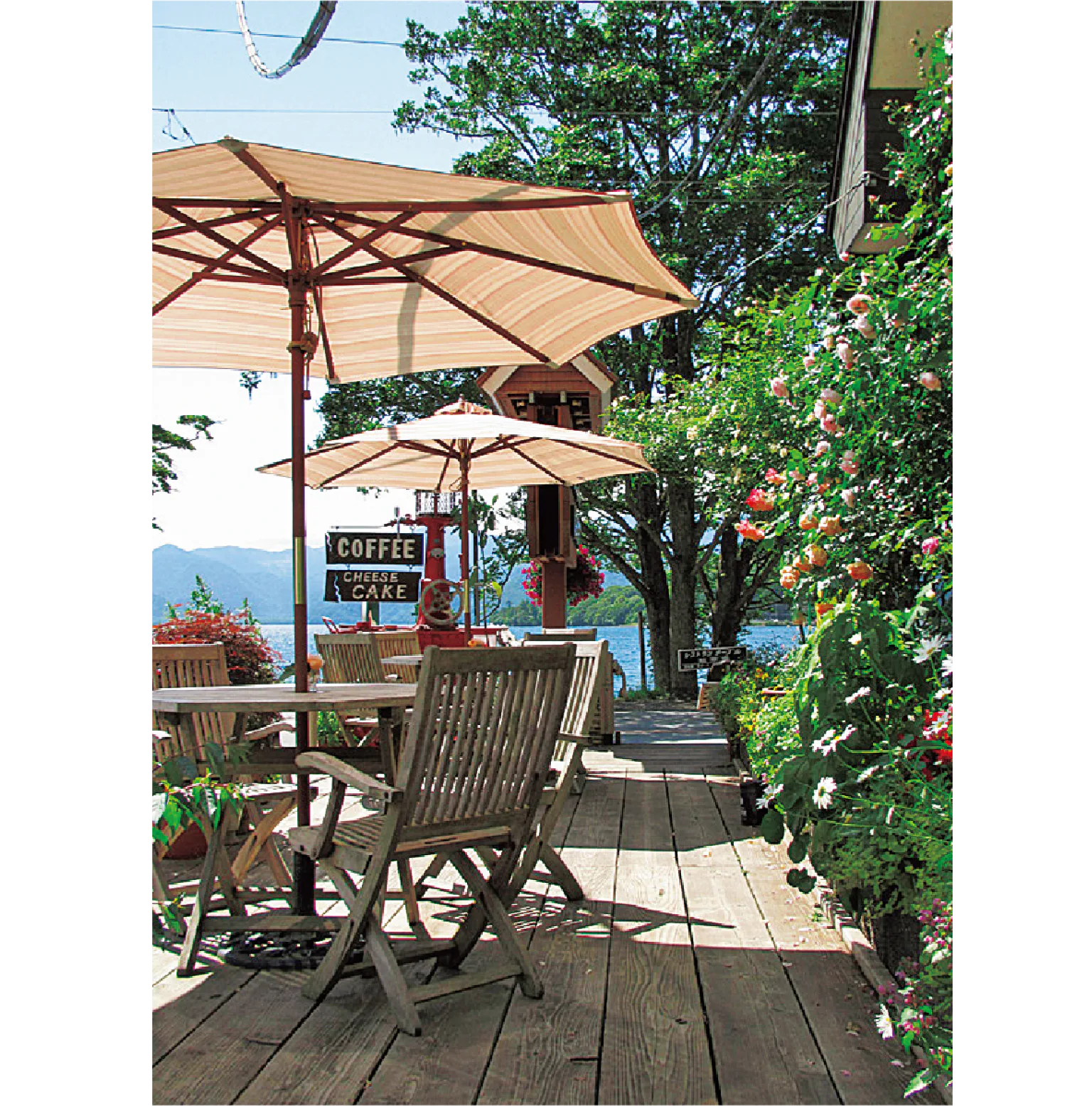 中禅寺湖畔にたたずむレイクビューのレストラン。絶景が楽しめるテラス席でゆったりとランチを味わい、贅沢なひとときを過ごそう。