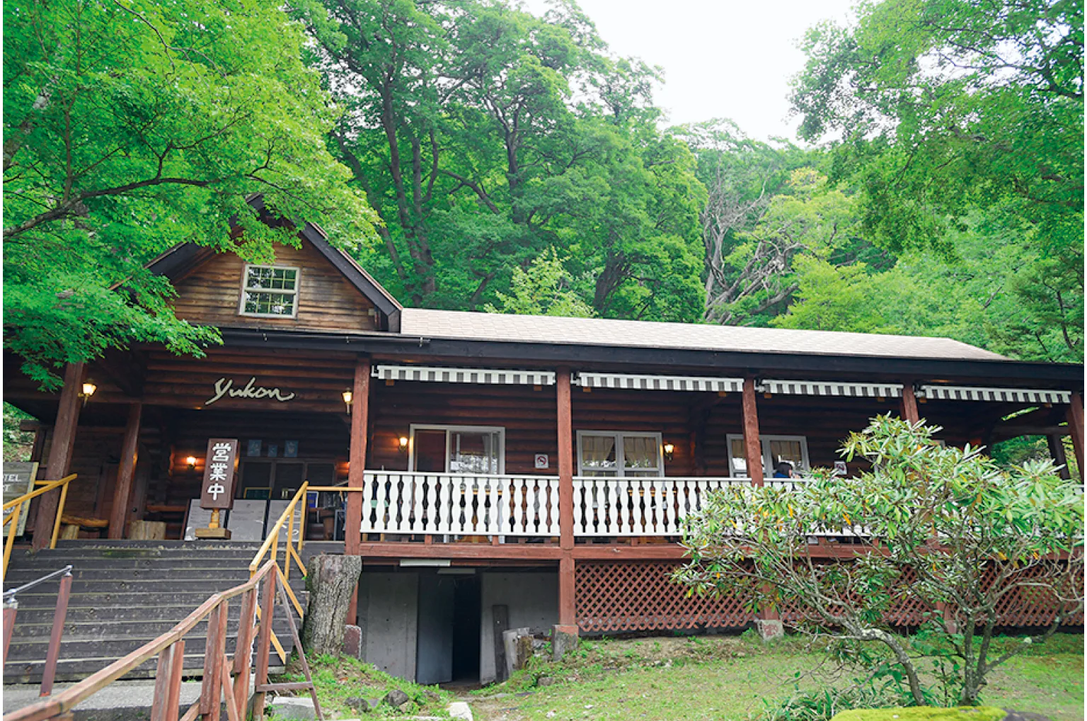 木の温もりあふれるログハウス風のカフェ