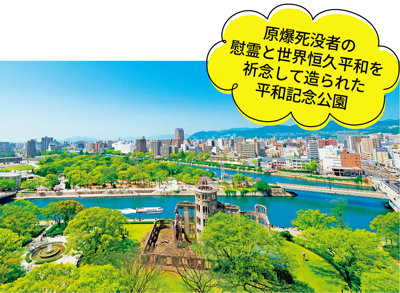広島観光の中心地。原爆ドームを擁する平和の街