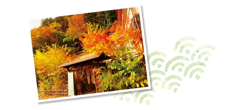 紅葉に彩られる宿の入口
