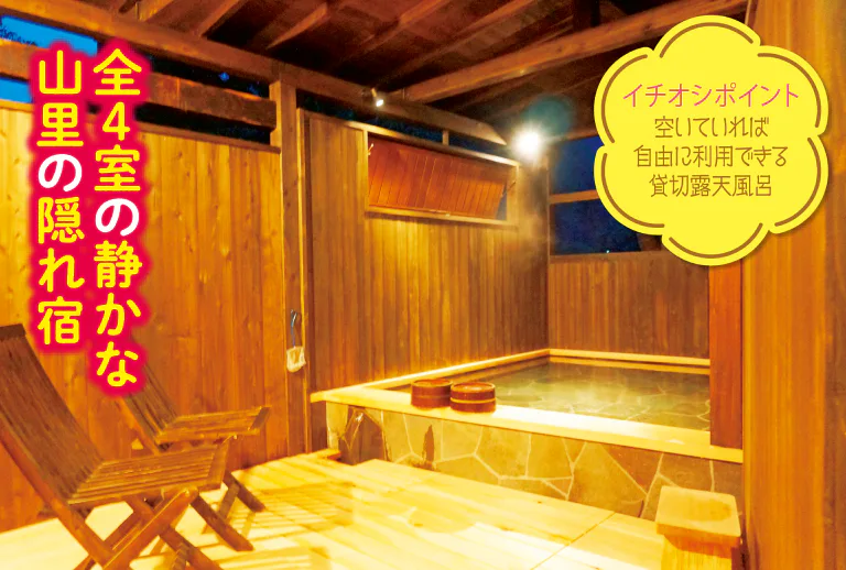 人里離れた静かな山里にたたずむ一軒宿。プライベート感あふれる特別な滞在を満喫したい。