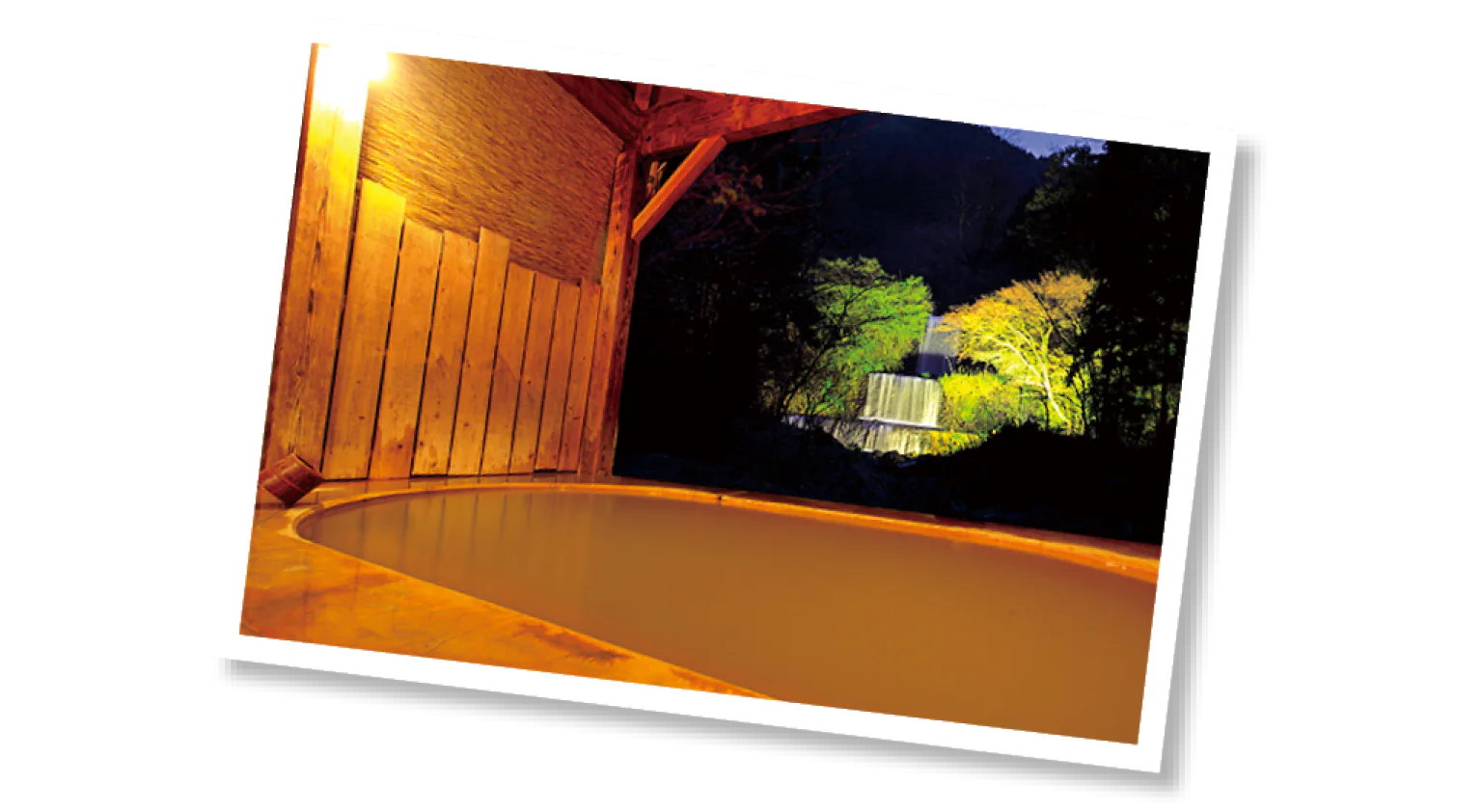 ライトアップした滝を眺めながら入浴できる露天風呂「滝見の湯」