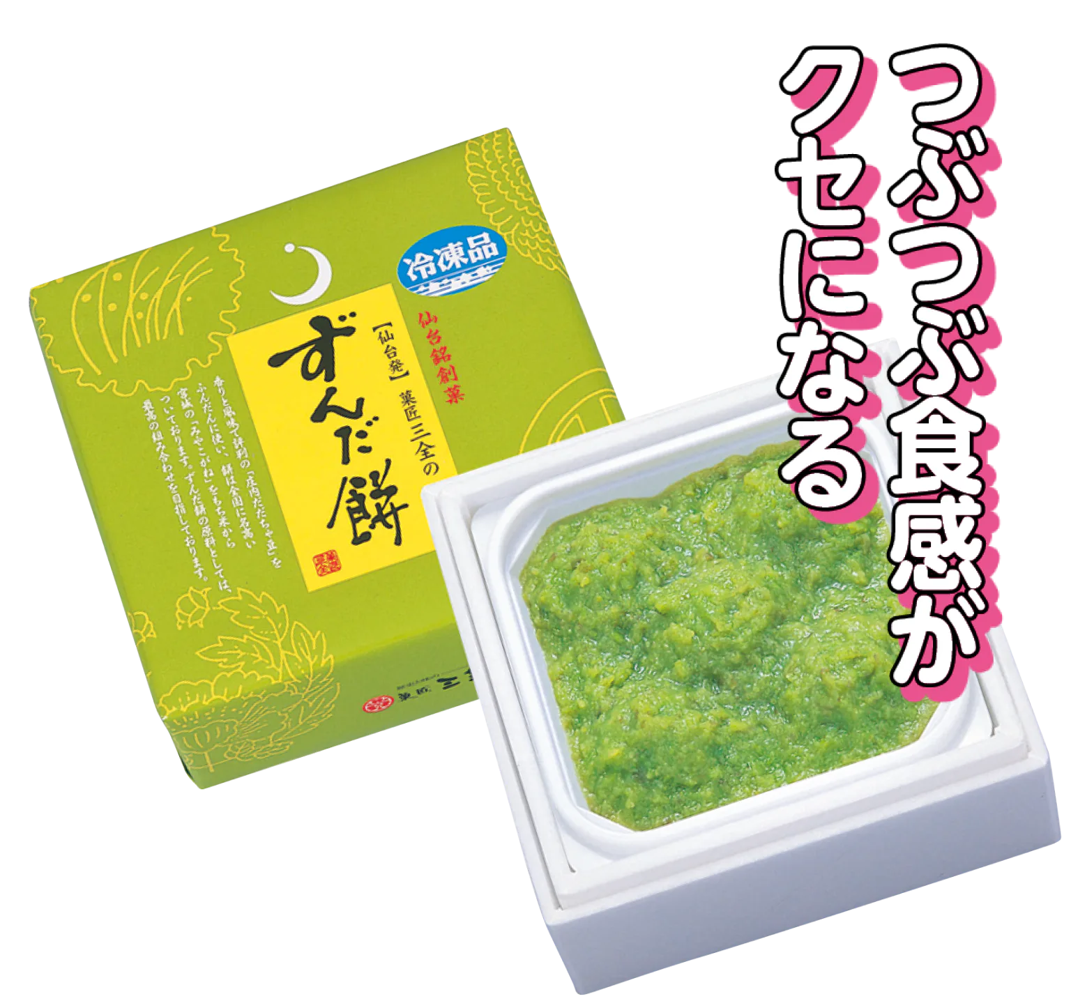 厳選した枝豆で作ったずんだ餡がたっぷり。作りたての味を保つため、急速冷凍している。