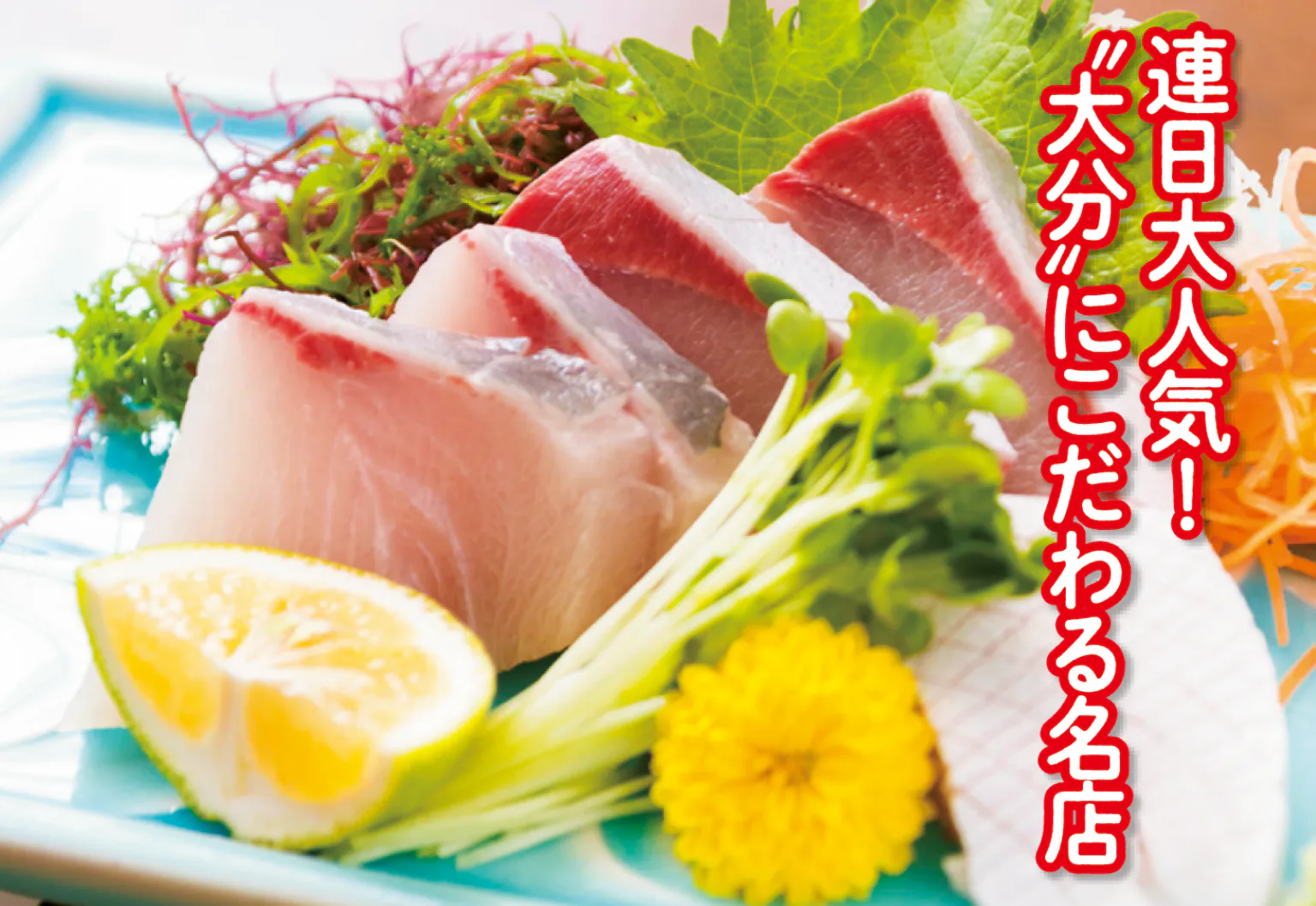 和食道40年の店主を筆頭に家族で営む食事処。関さば・関あじの刺身をはじめ、海鮮メニューが豊富に揃うなか、とり天も隠れた人気メニュー。切り方にワザを施した鶏モモ肉は、口の中でほどけるようなふわふわ食感。国道10号沿いに立ち、地元客で賑わう。