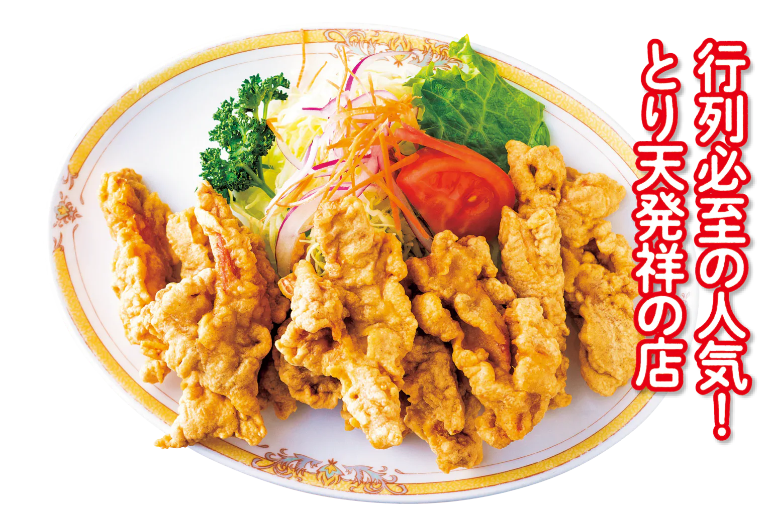 とり天は、帝国ホテルの料理人だった創業者が中華風唐揚げをヒントに考案したもの。国産にこだわる鶏モモ肉を包む衣は、新鮮な卵と家伝の醤油で仕上げたサクサク食感。鶏肉は皮を剥いでいるためさっぱりヘルシー。大正15年(1926)創業。芸能人のファンも多い。