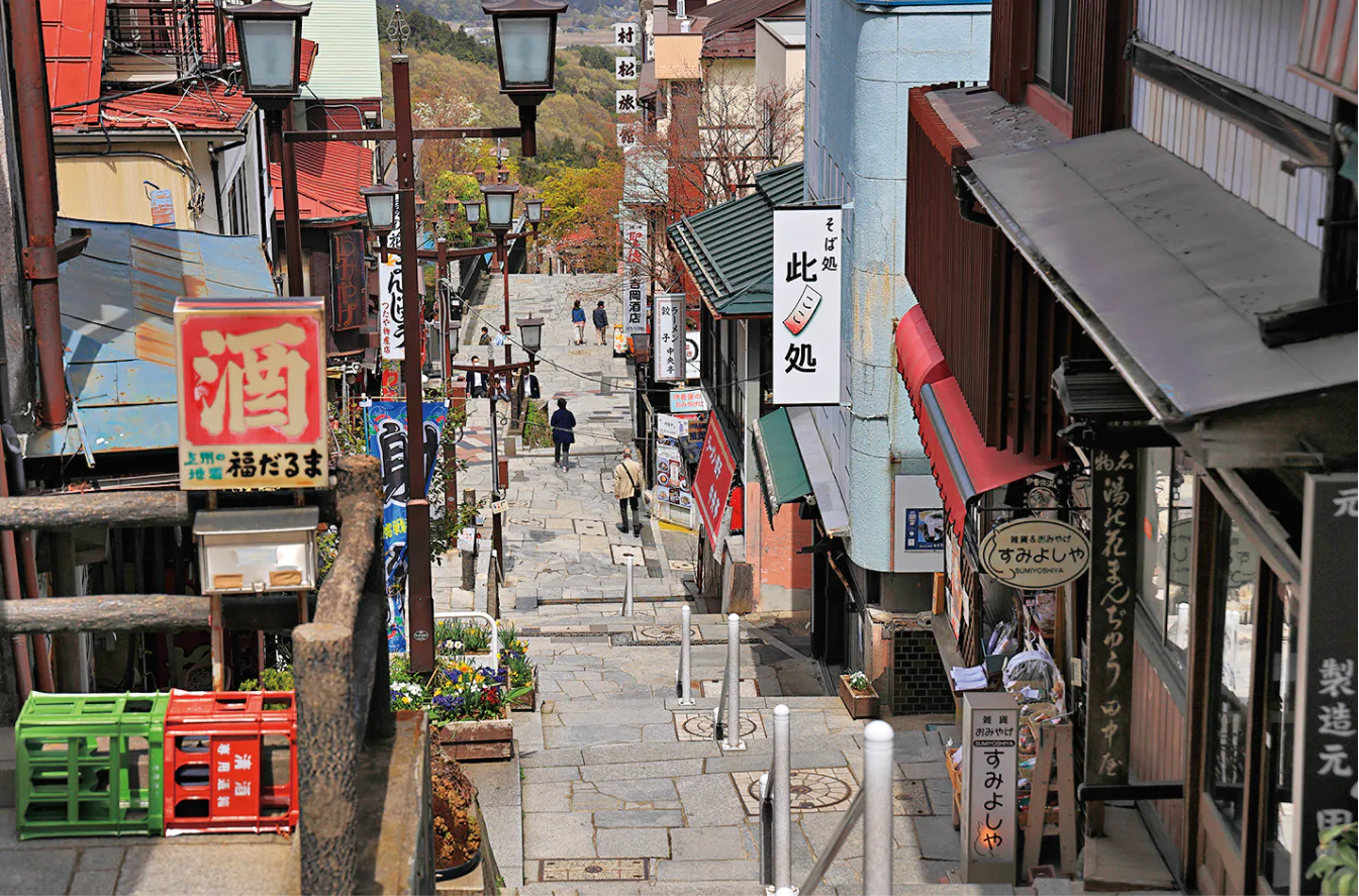 石段街が延びるレトロな温泉街