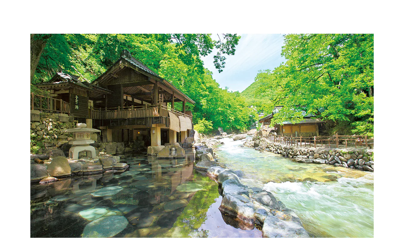 群馬県の北部に位置し、谷川岳の山懐に抱かれた温泉地。趣向を凝らした絶景露天風呂を有する湯宿が点在する。