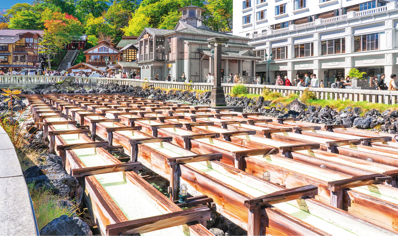 兵庫の有馬温泉、岐阜の下呂温泉と並び、日本三名泉の一つに数えられる草津温泉。軽井沢に近く、避暑地としての魅力も併せ持つ。