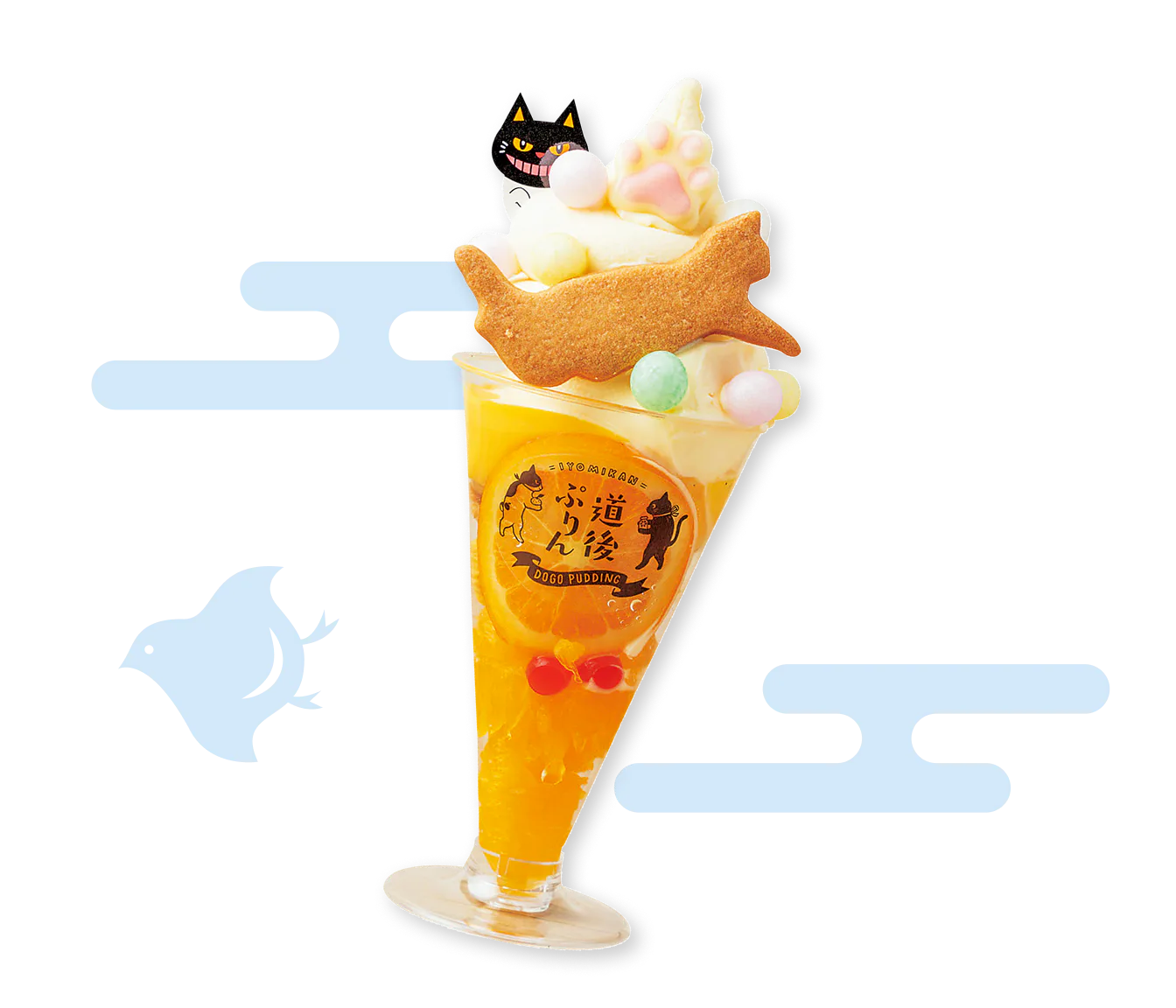 いよかん&バウムクーヘン&プリンの上に、ソフトクリームをのせた豪華なパフェ