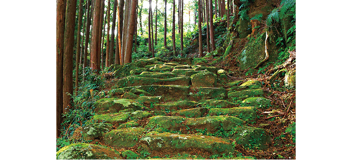 伊勢と熊野を結んだ熊野古道伊勢路。馬越峠から尾鷲の町中を通り古道歩きができる。神聖な雰囲気が漂う