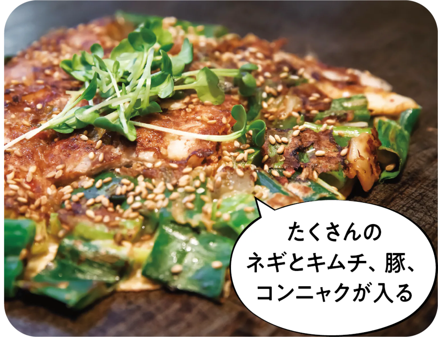 これでもか!という量のネギで作るねぎ焼が名物。豆乳や生クリームが入るクリーミーな味わいの生地や、広島産カキ醤油をベースにしたタレなど、こだわりを尽くした一枚を楽しんで。