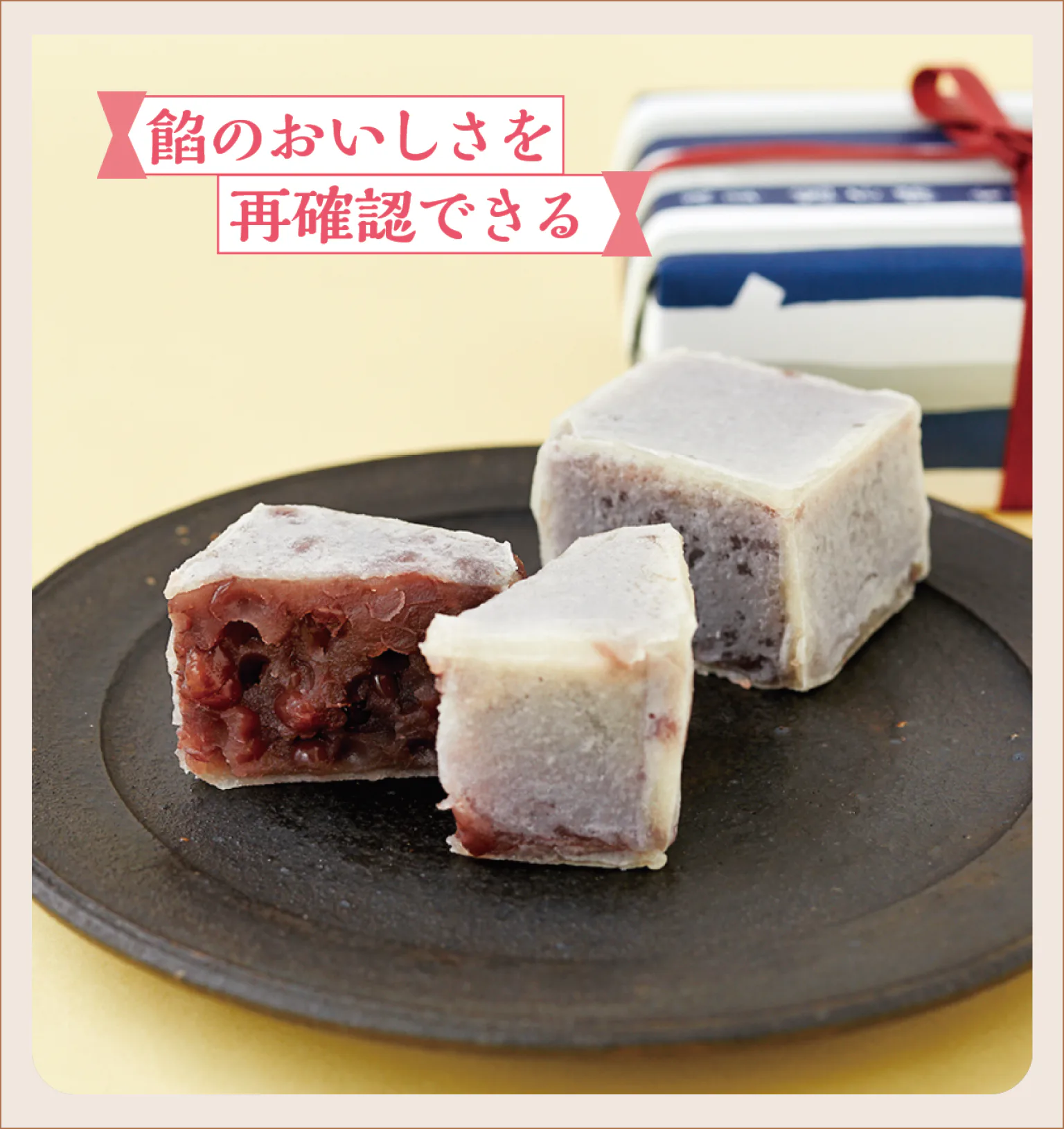 甘さを抑えた自然な風味が楽しめる、あんこ菓子。定番の小豆餡のほか、白いんげん、抹茶、イチゴ、ミカン、コーヒーの全6種類を詰め合わせ。
